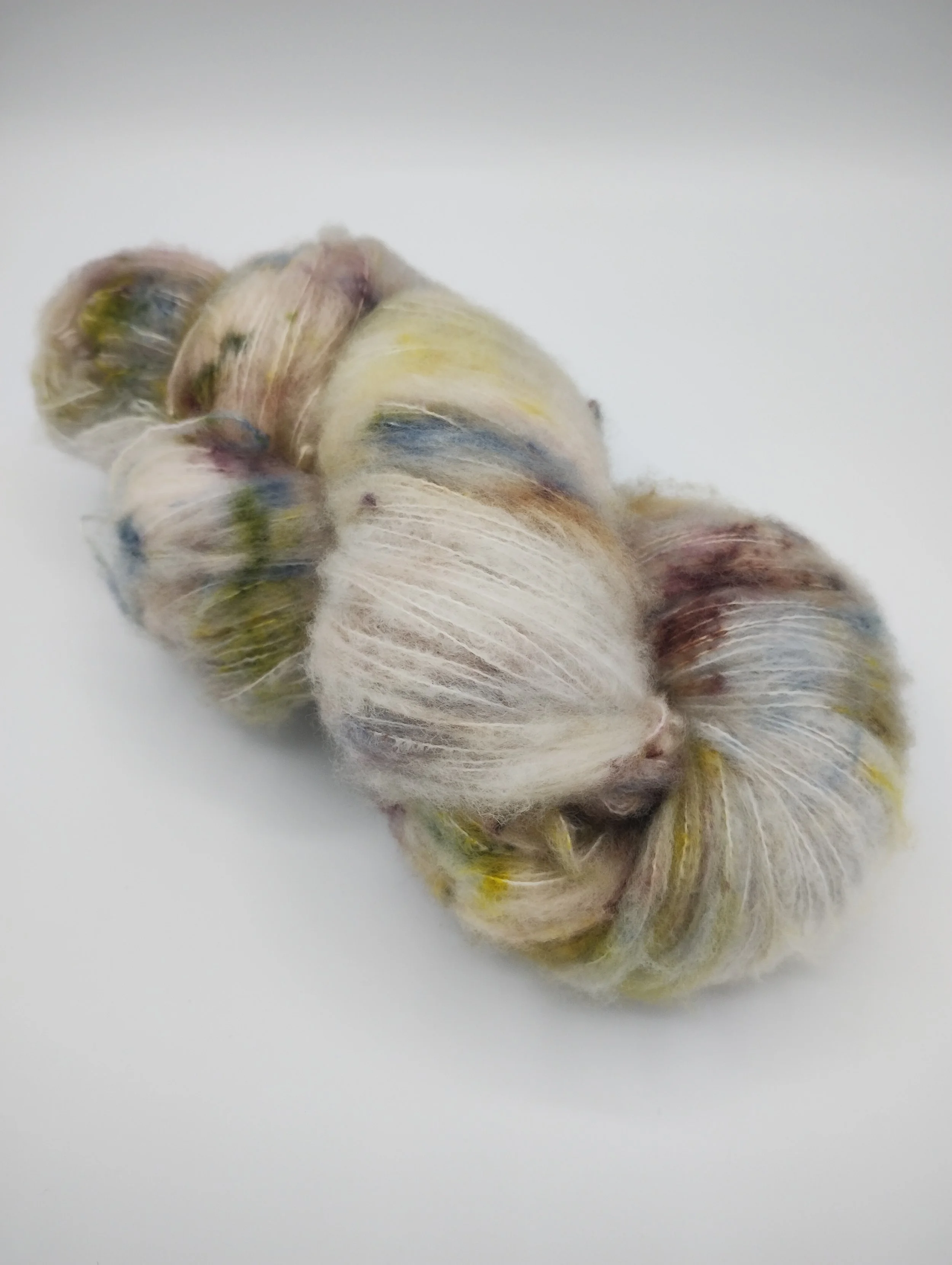 Fluff Lace is incredibly soft, warm and light. Knits to a DK gauge on 4mm needles and a little goes a long way. Non-shedding and non-itchy, it’s a great alternative to mohair, making it especially suitable for those with sensitive skin and eyes.