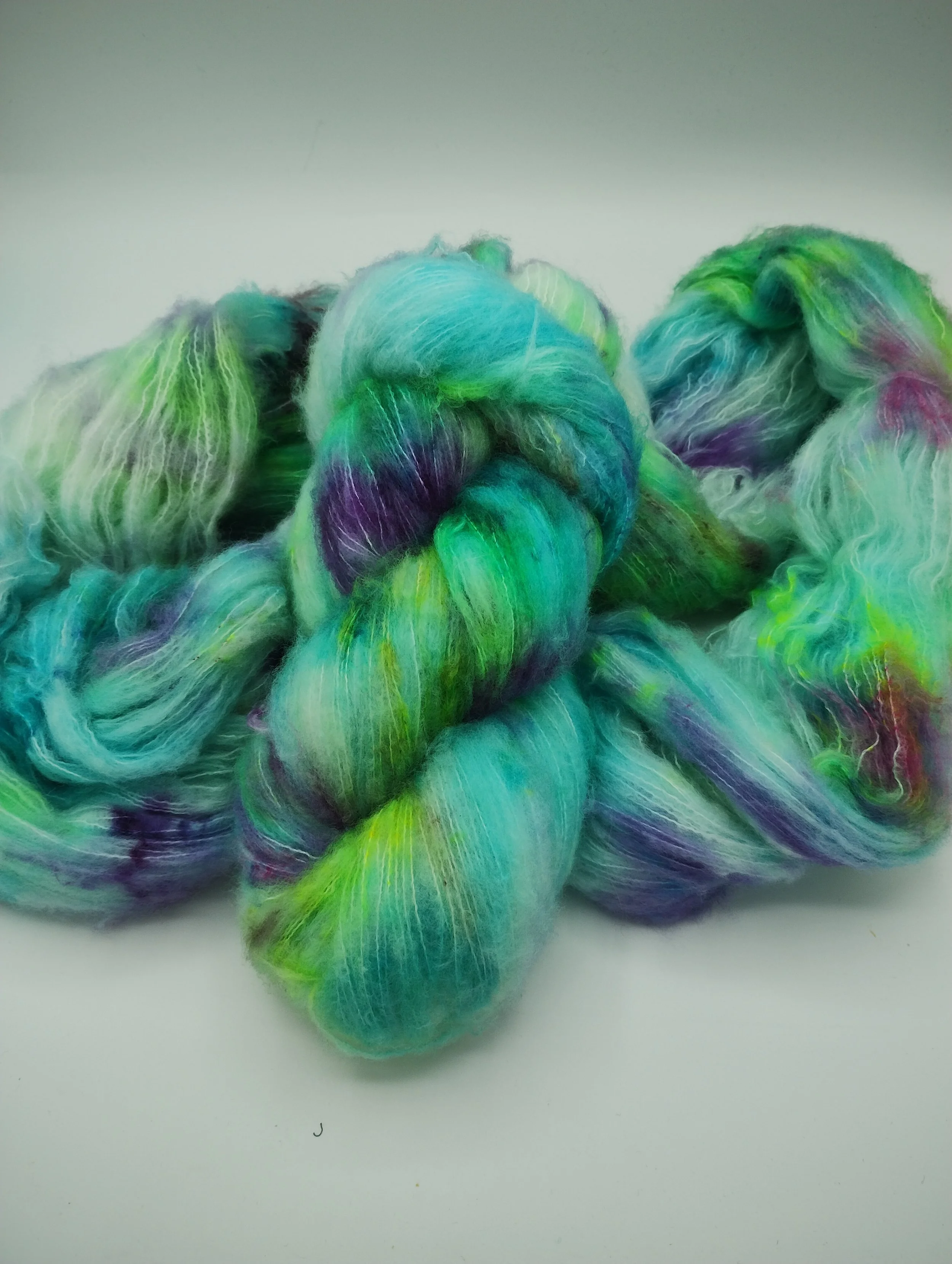Fluff Lace is incredibly soft, warm and light. Knits to a DK gauge on 4mm needles and a little goes a long way. Non-shedding and non-itchy, it’s a great alternative to mohair, making it especially suitable for those with sensitive skin and eyes.