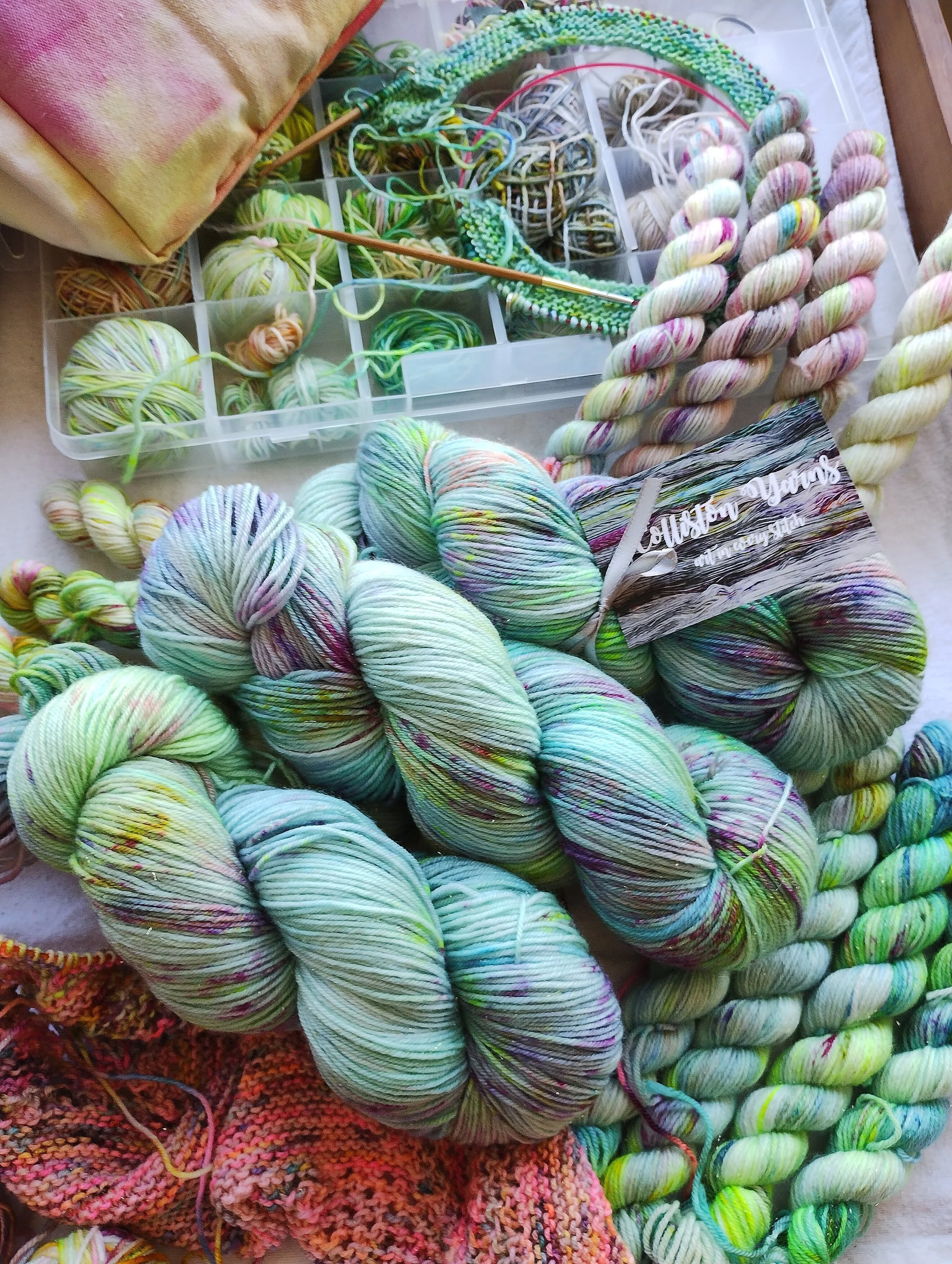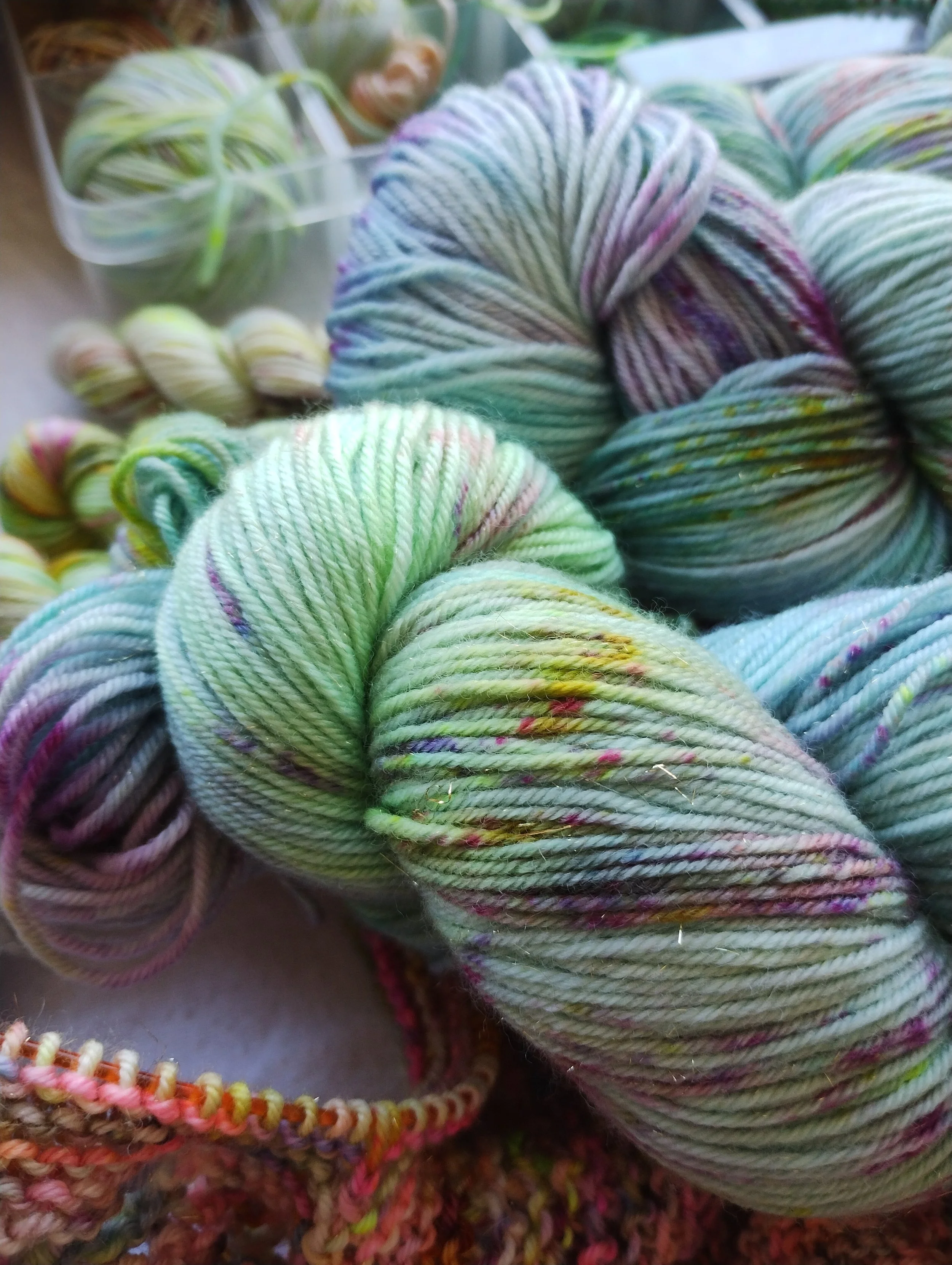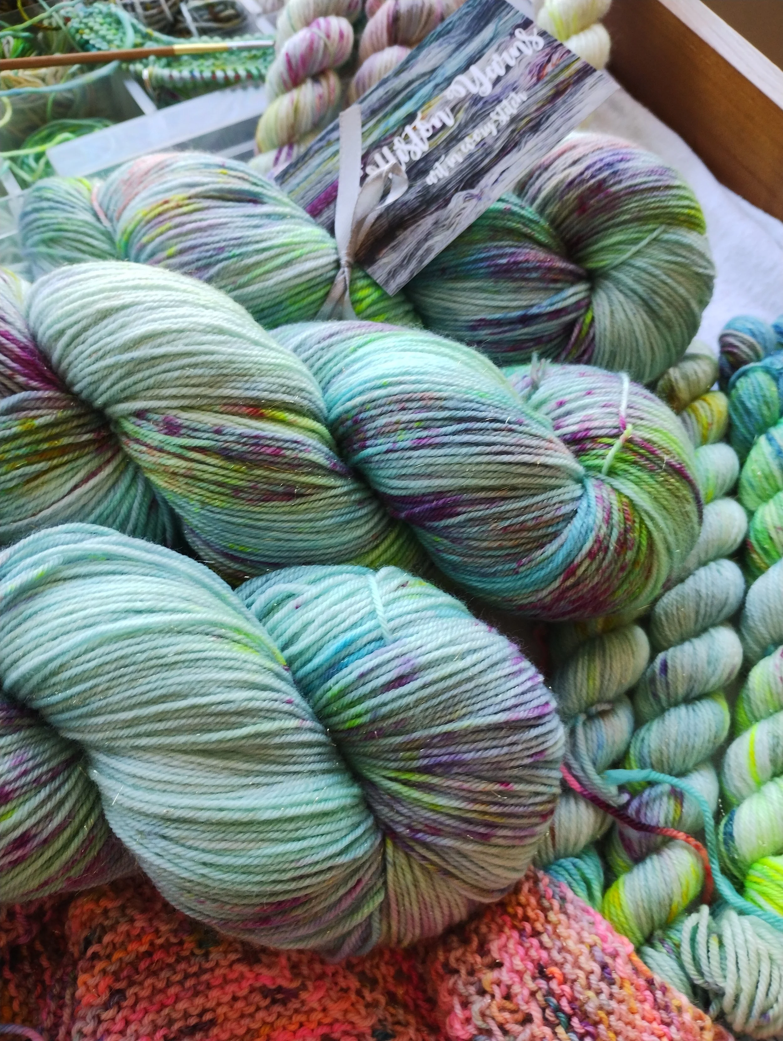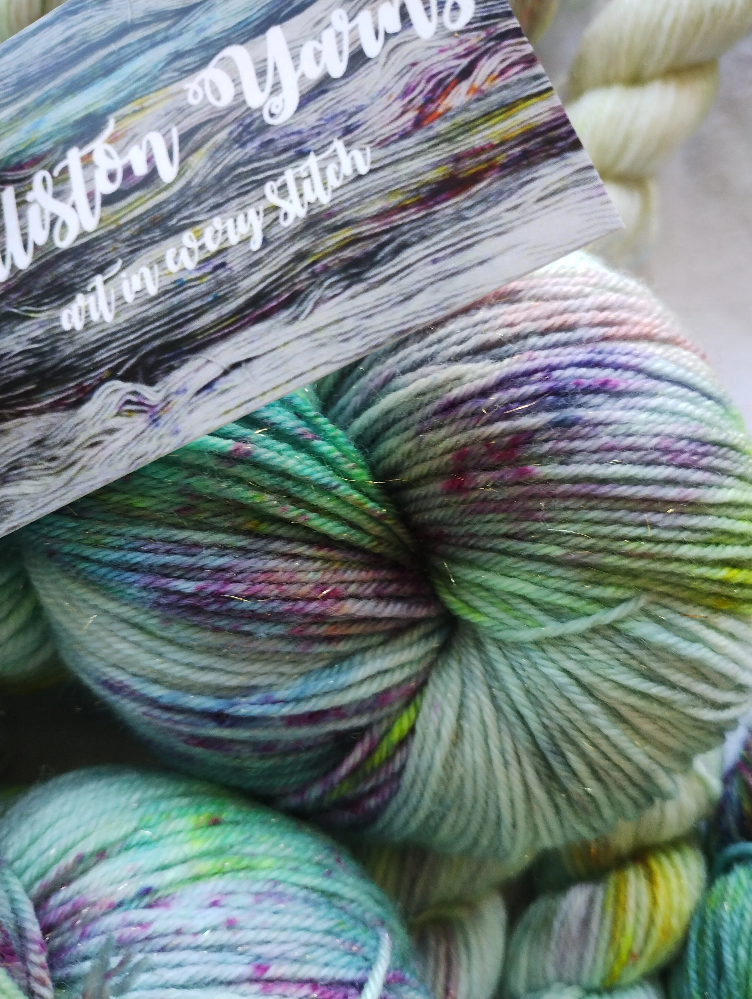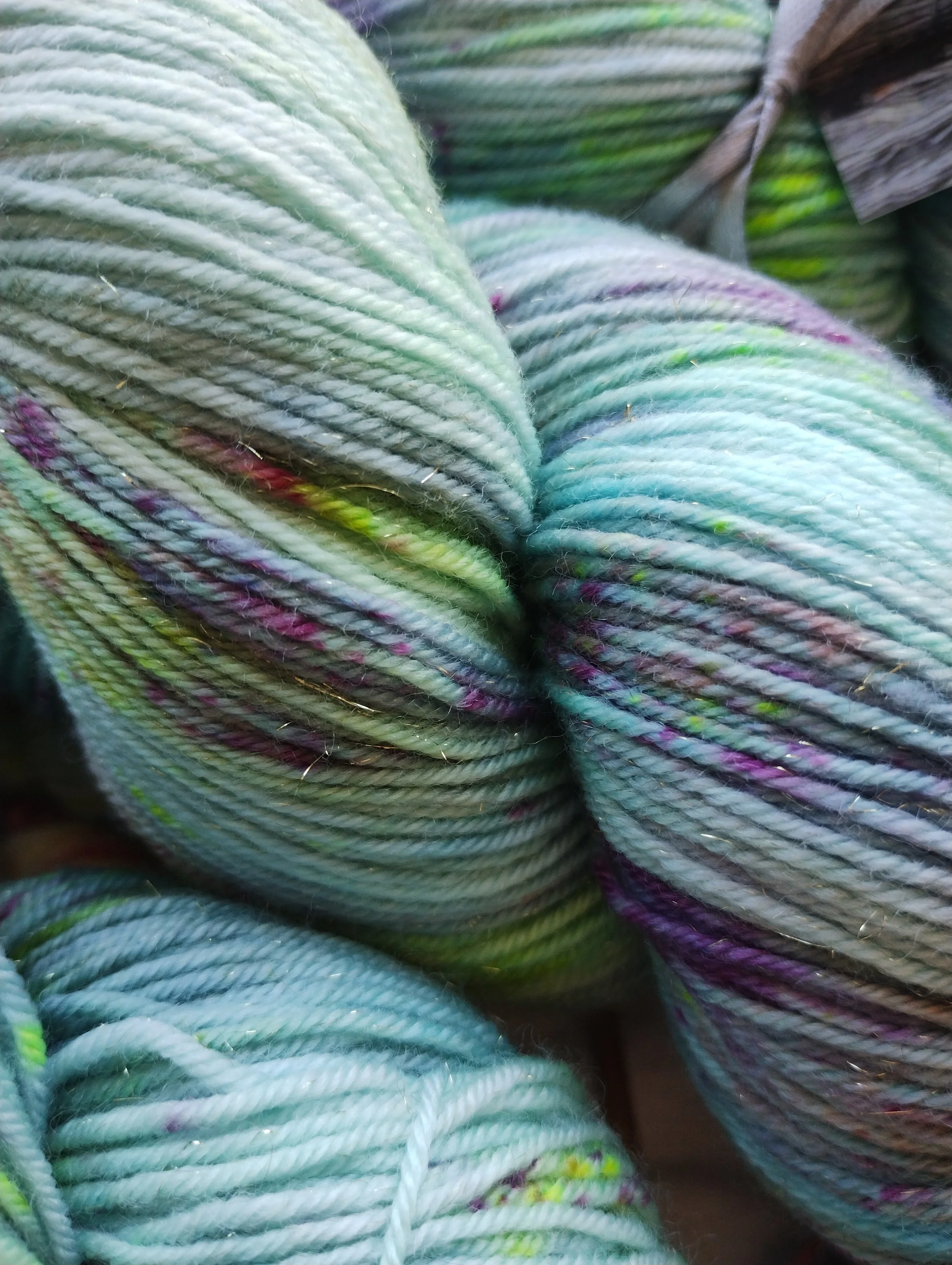 In the studio, we use minimal resources, recycle soak and dye water where we can and try to source sustainable and recyclable packaging for your yarn wherever practical to do so.