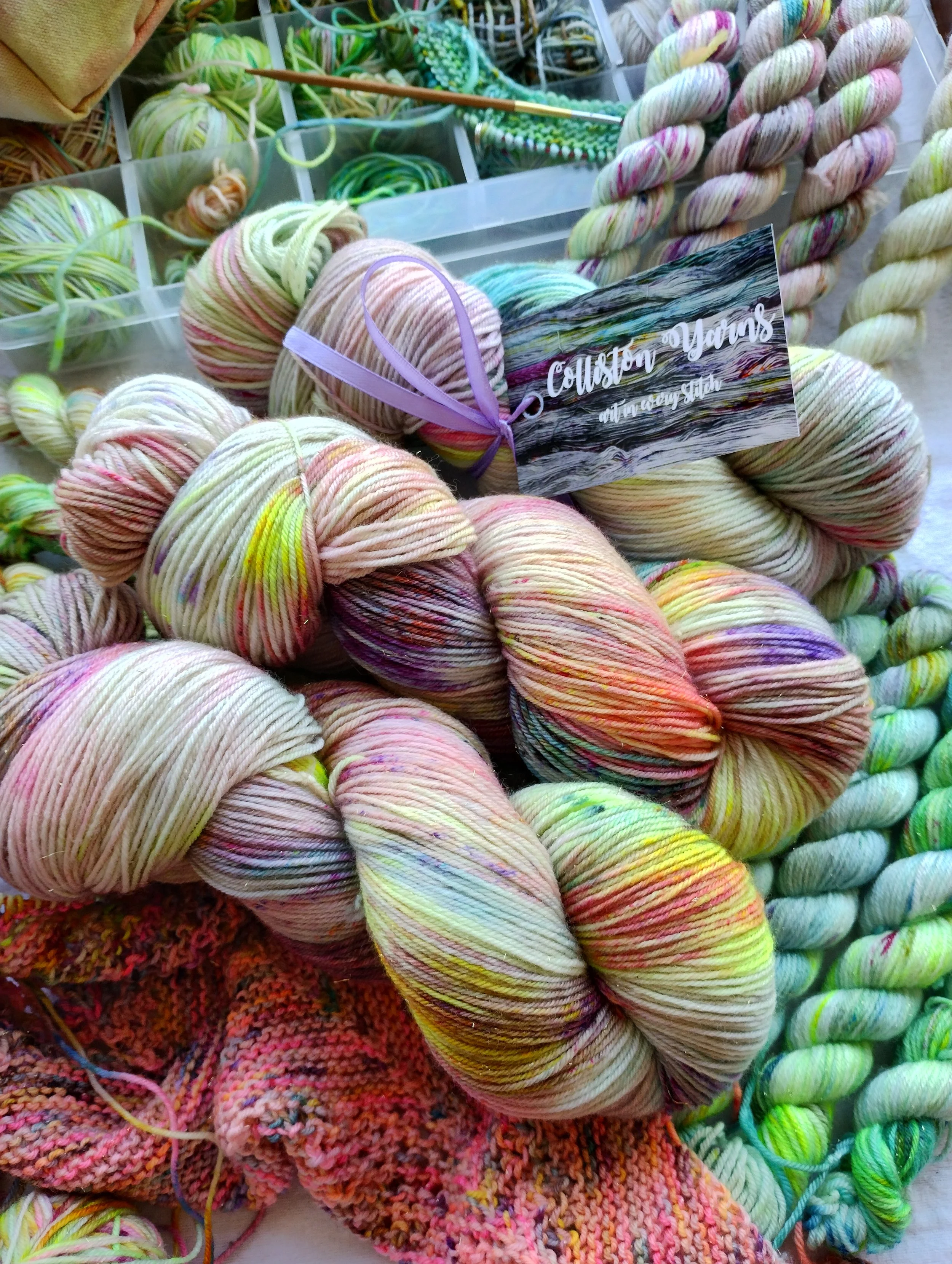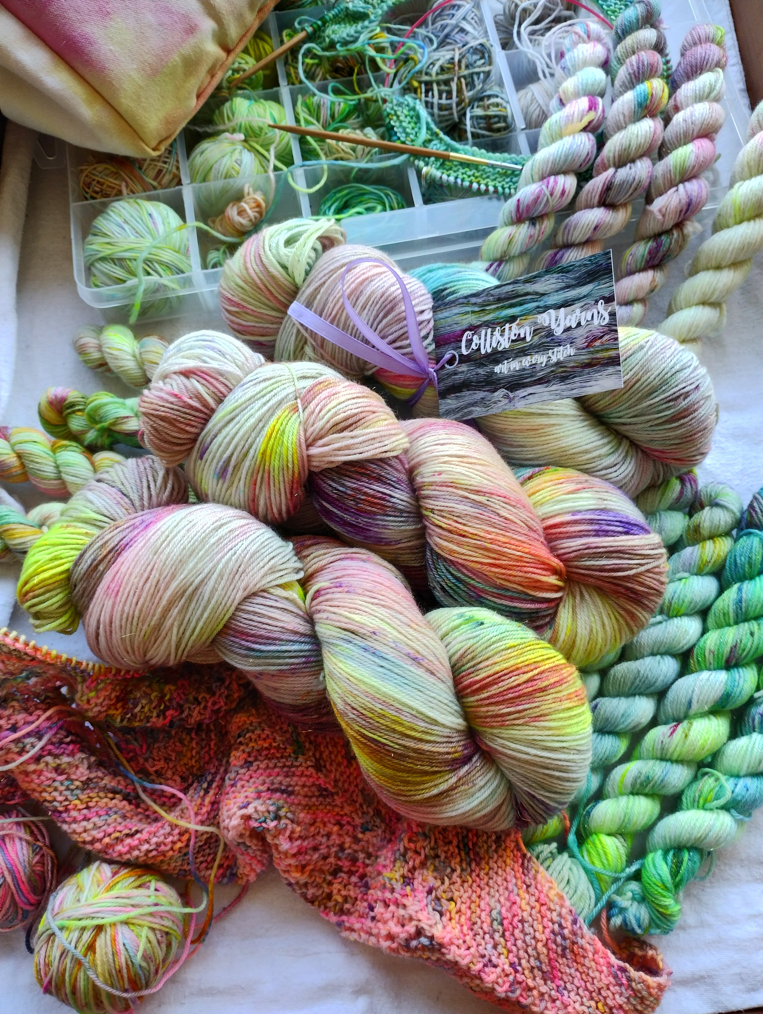 In the studio, we use minimal resources, recycle soak and dye water where we can and try to source sustainable and recyclable packaging for your yarn wherever practical to do so.