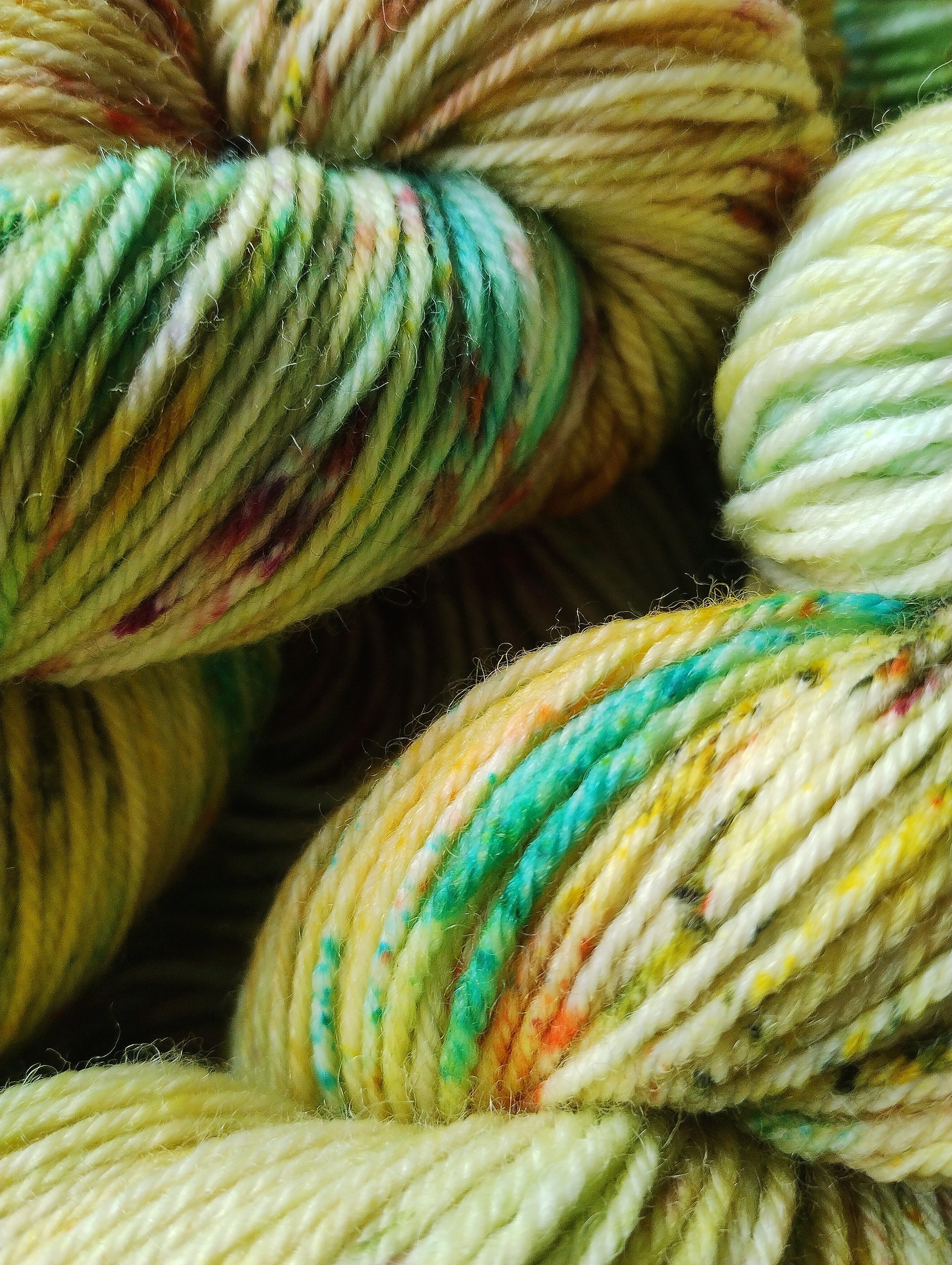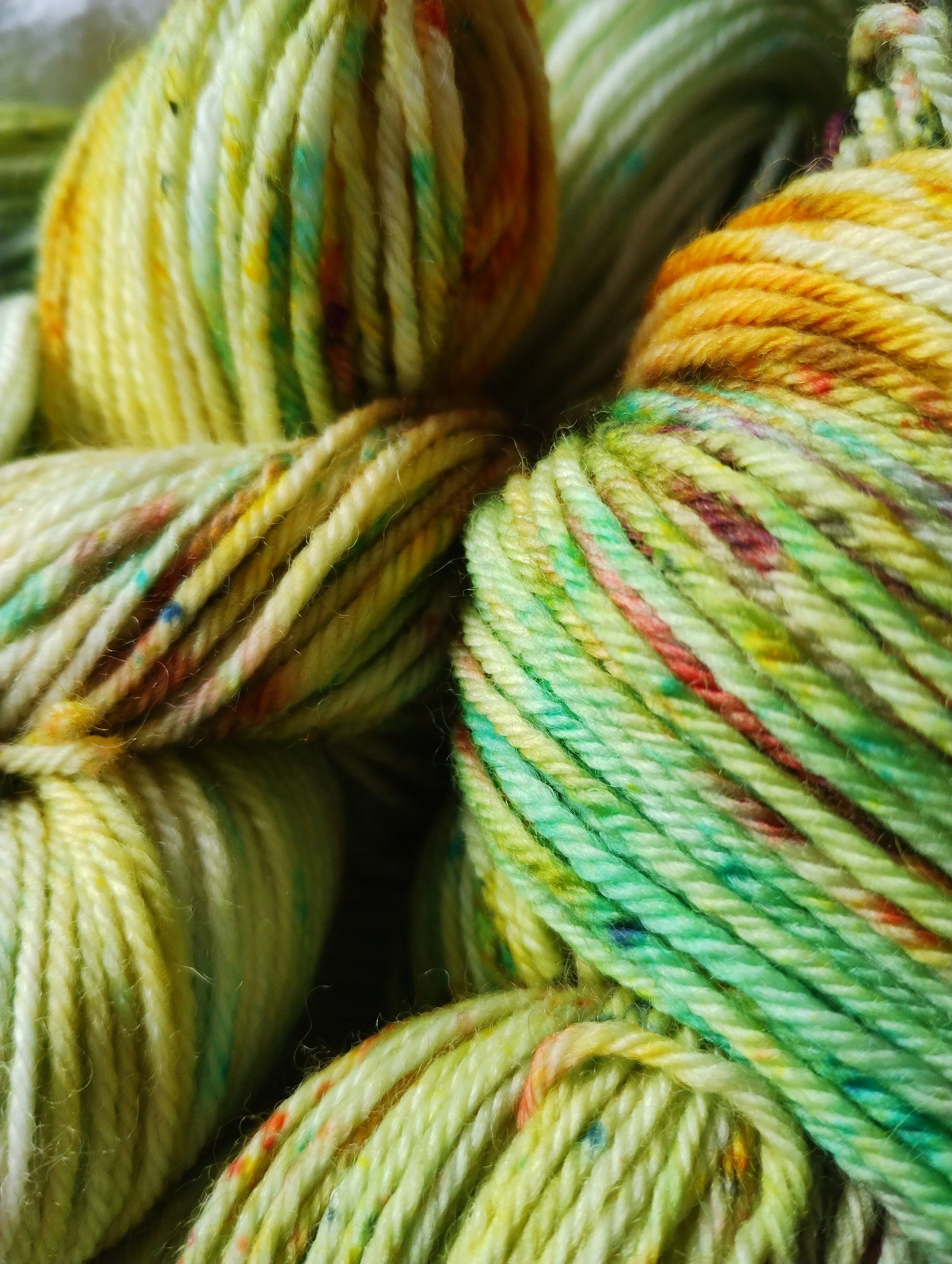 A bouncy, durable but still soft all round sock yarn. This one has a bit more of a traditional lambswool handle but is still suitable for next to skin wear. A perennial favourite, it takes colour well and gives crisp stitch and speckle definition.