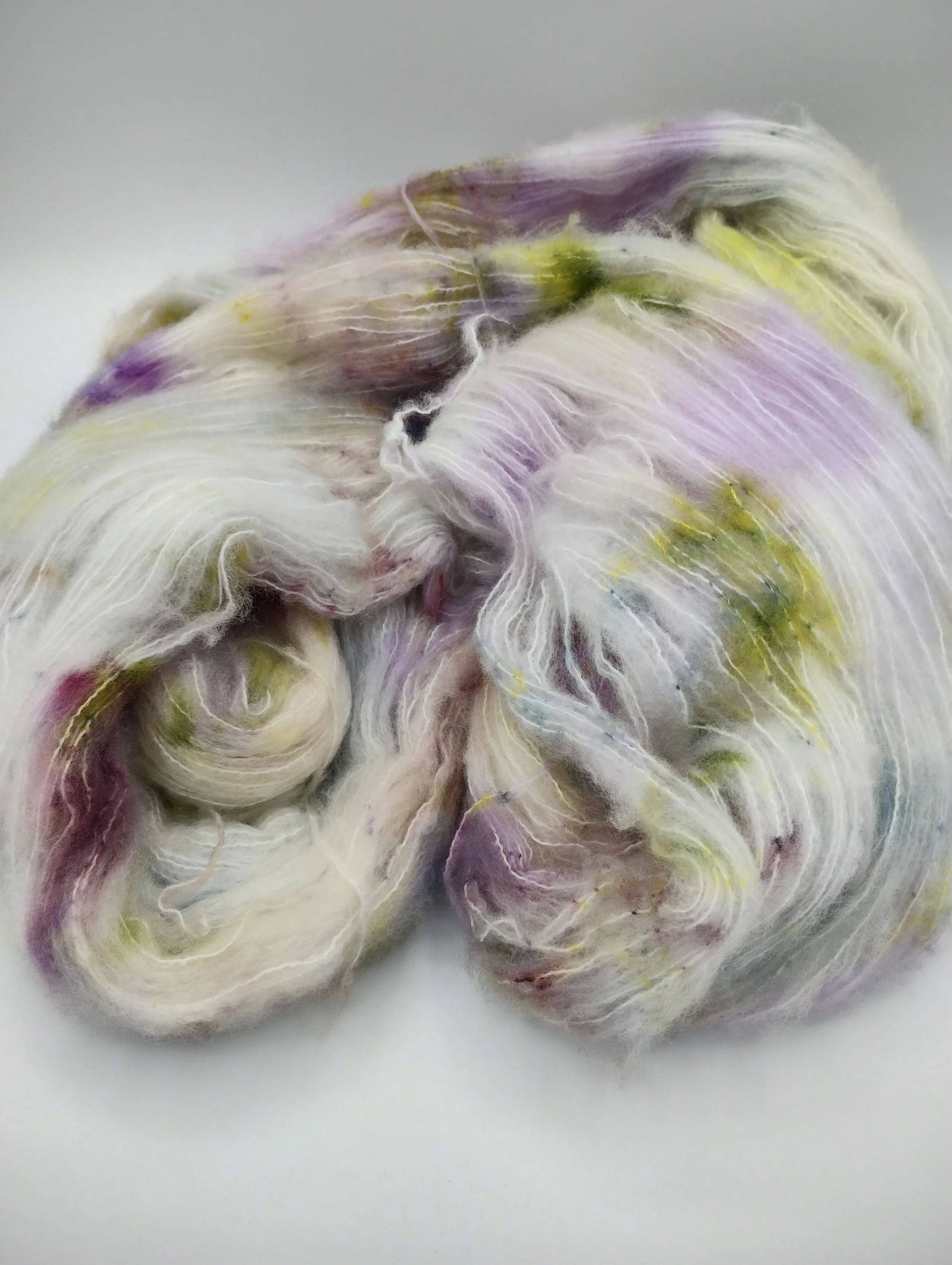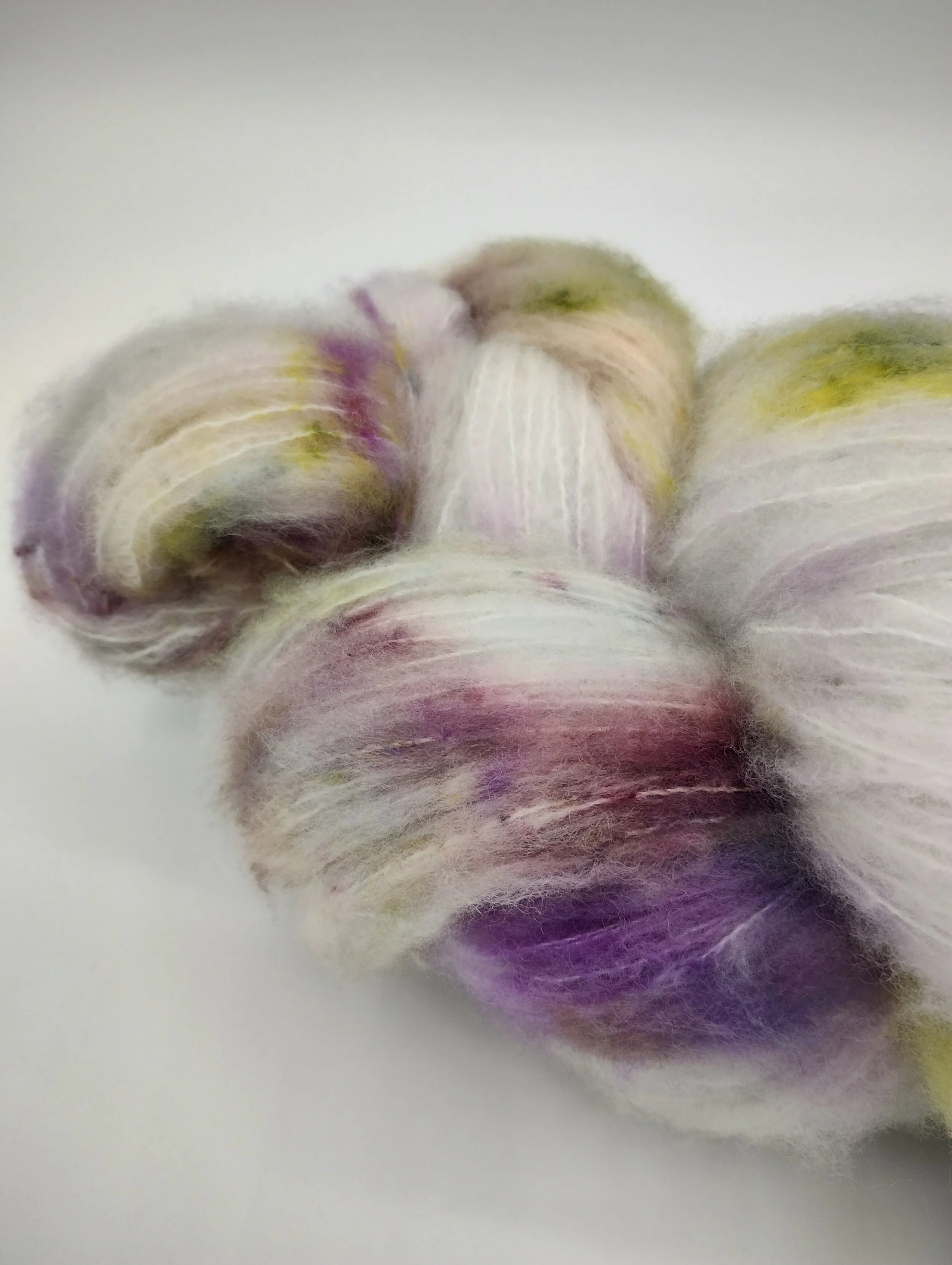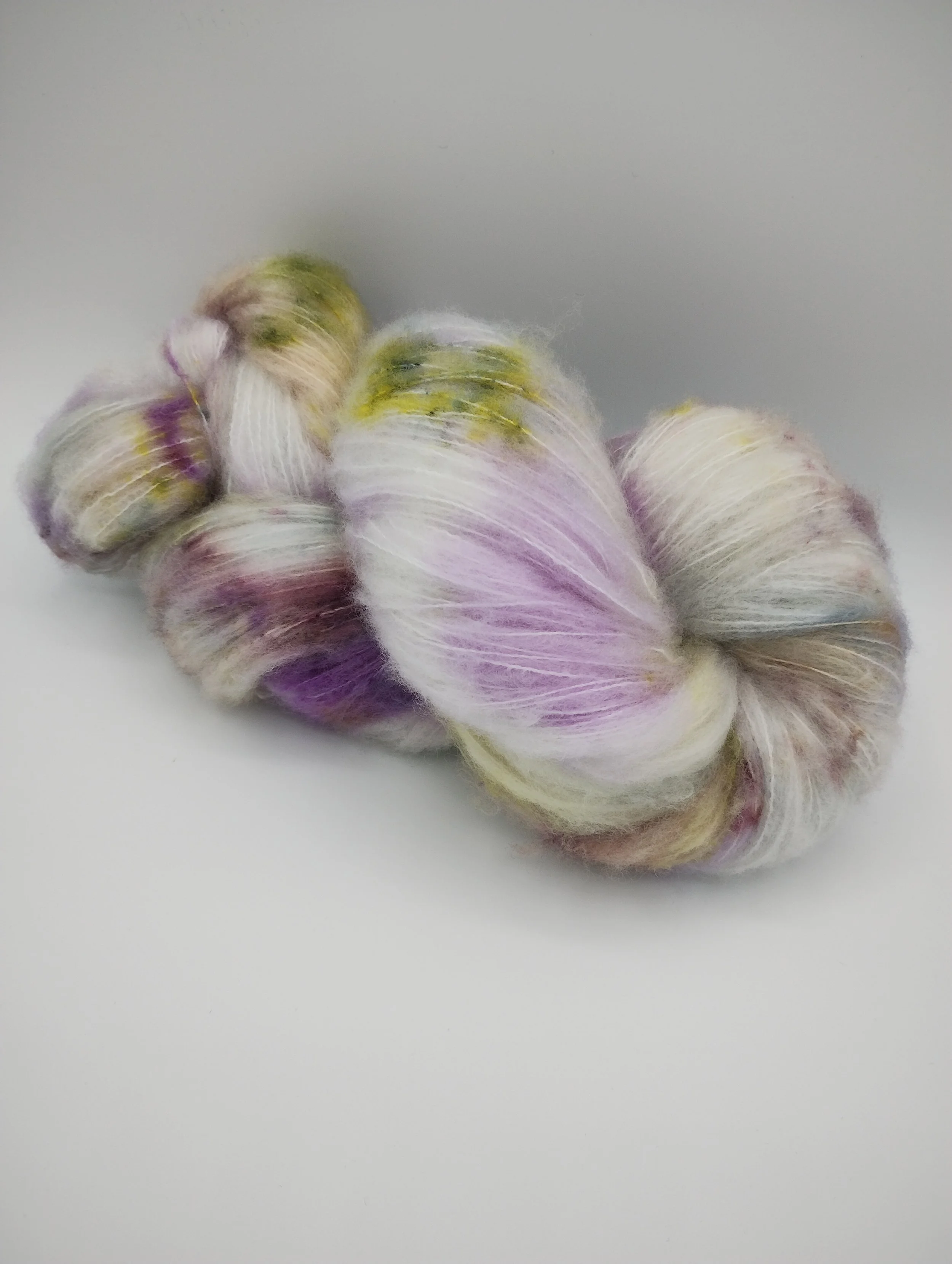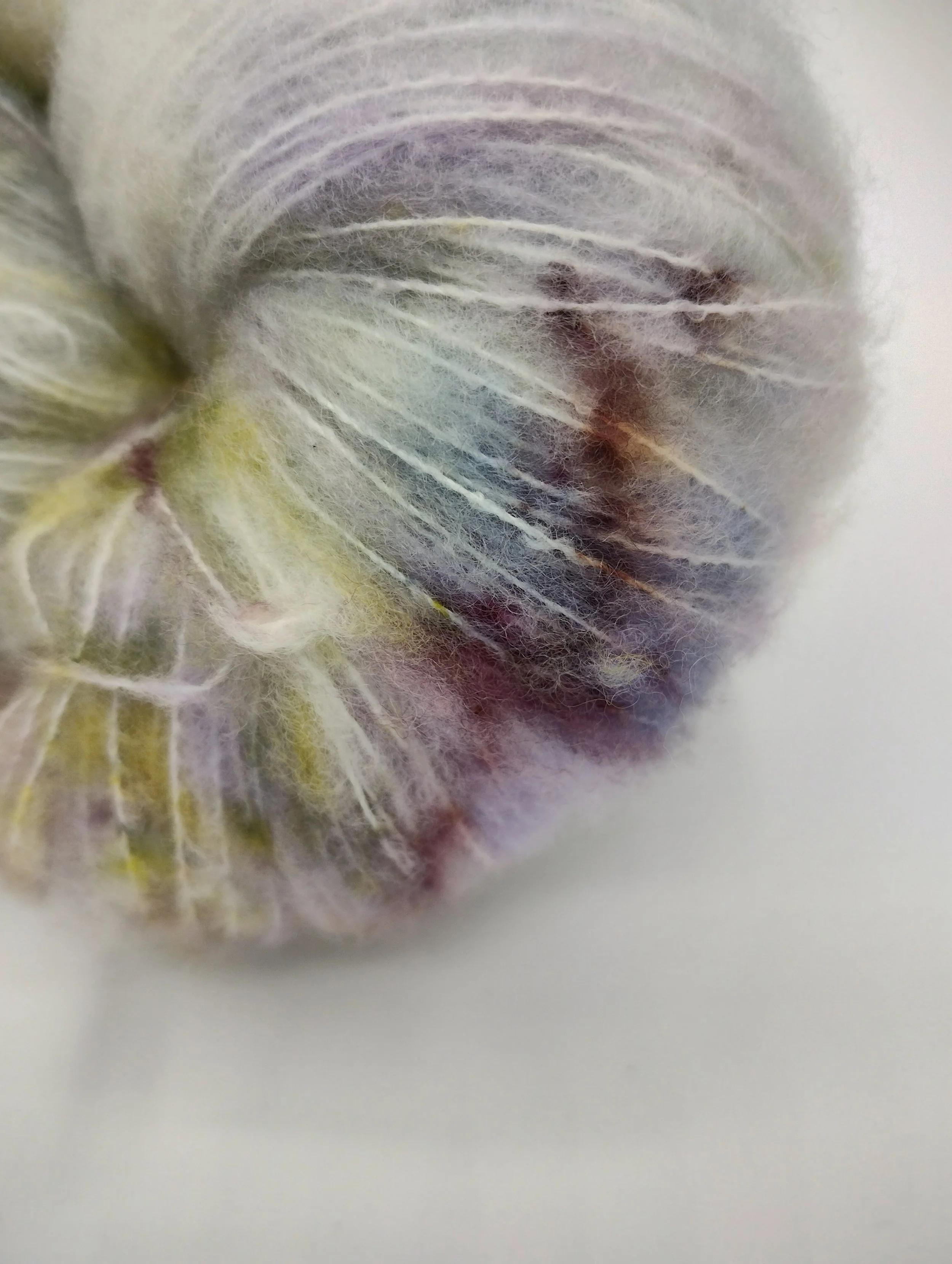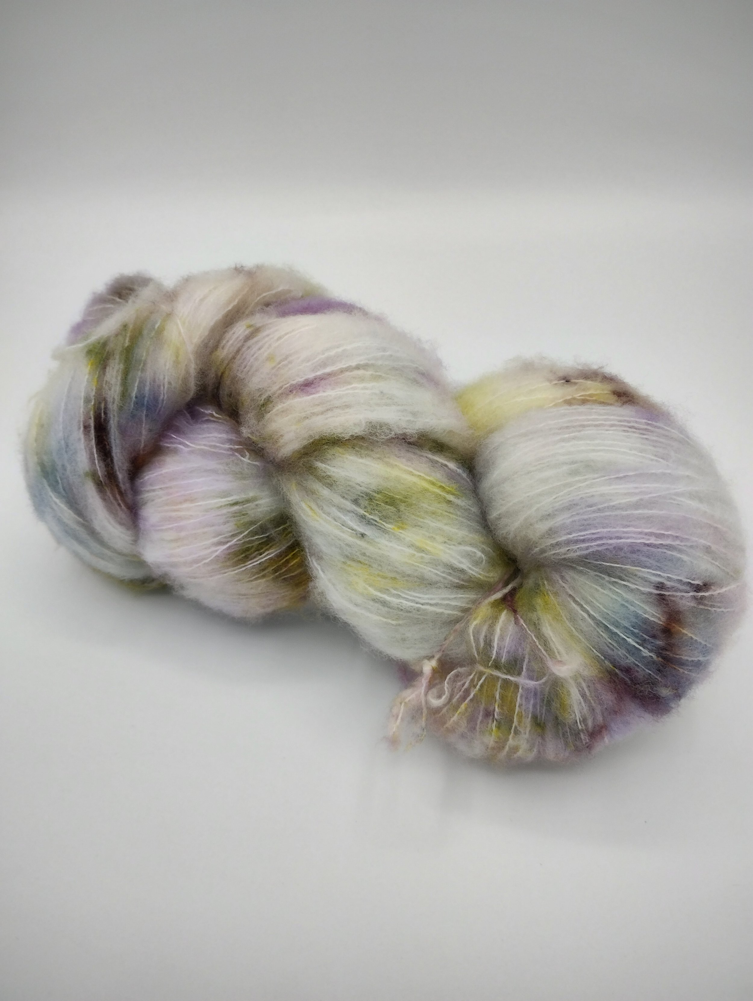 Fluff Lace is incredibly soft, warm and light. Knits to a DK gauge on 4mm needles and a little goes a long way. Non-shedding and non-itchy, it’s a great alternative to mohair, making it especially suitable for those with sensitive skin and eyes.