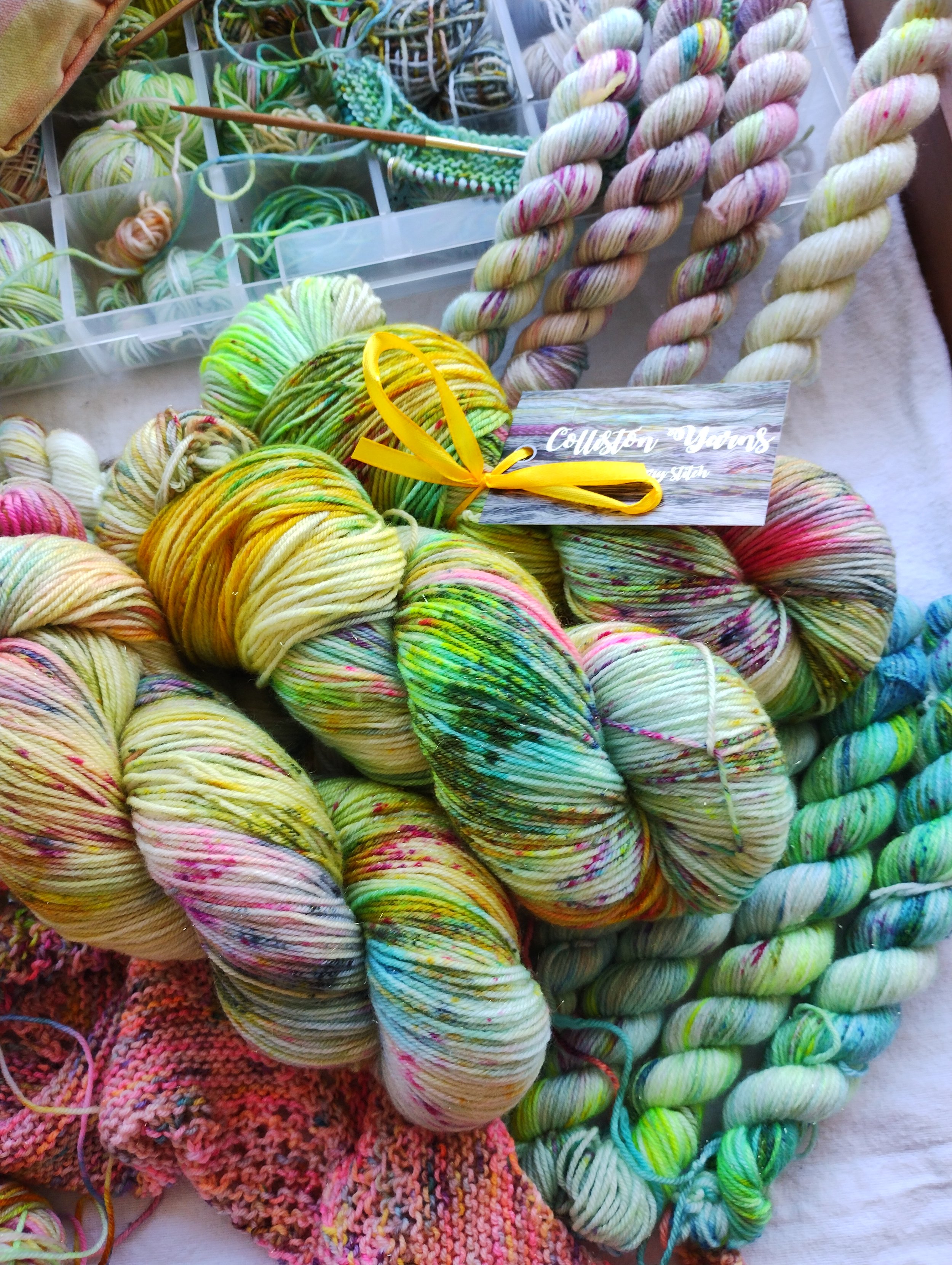 In the studio, we use minimal resources, recycle soak and dye water where we can and try to source sustainable and recyclable packaging for your yarn wherever practical to do so.