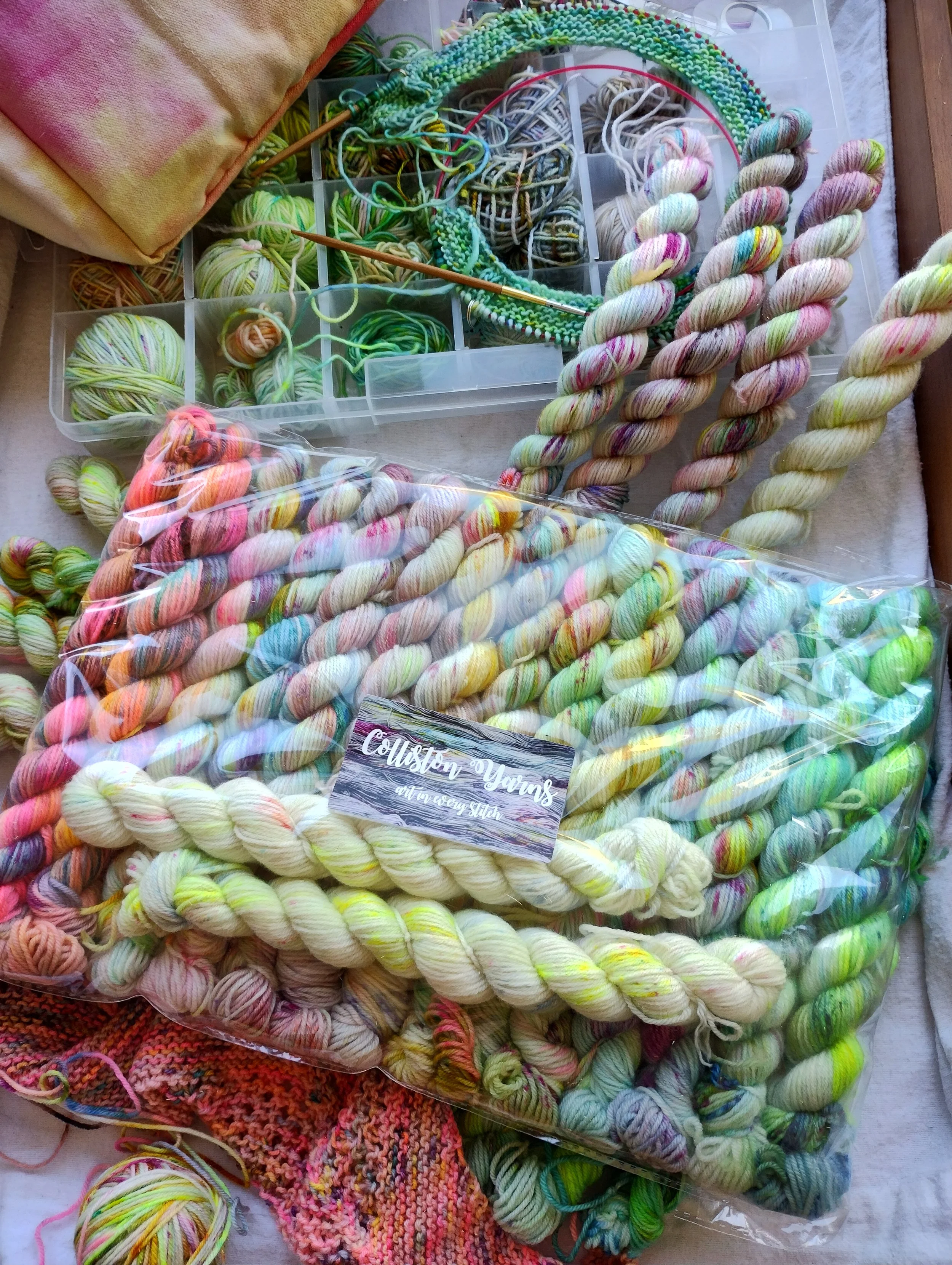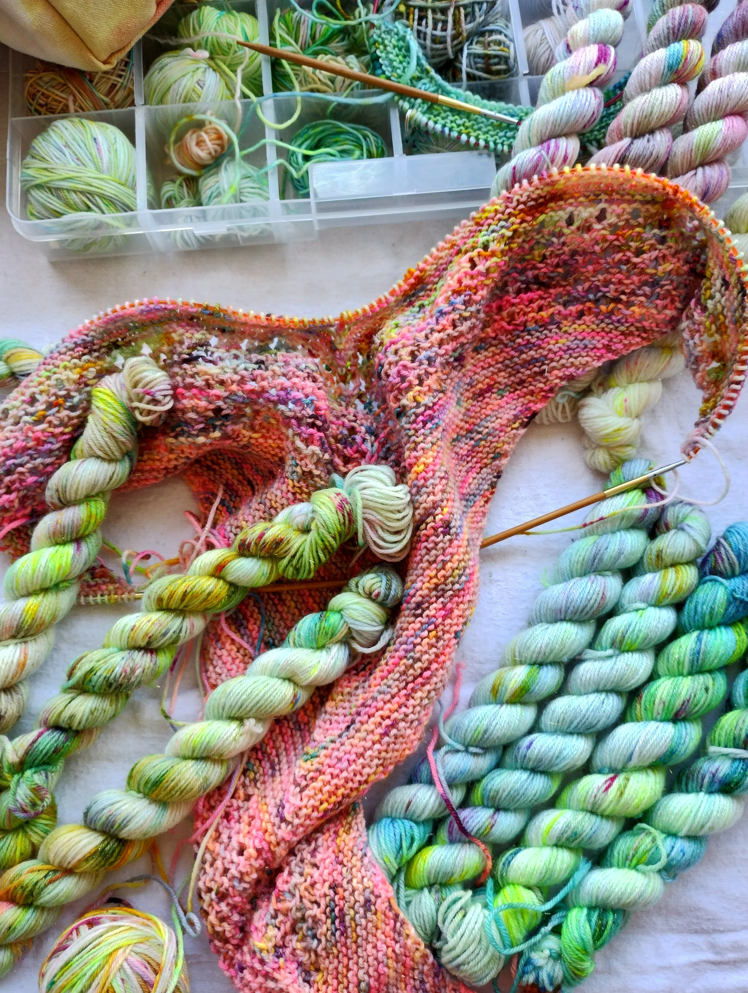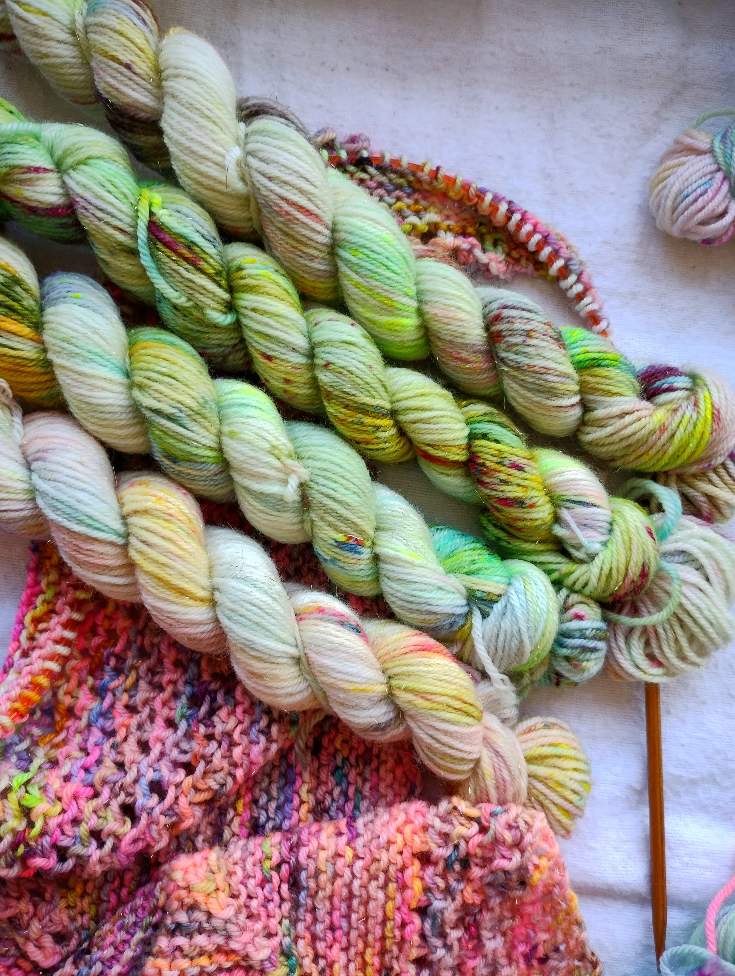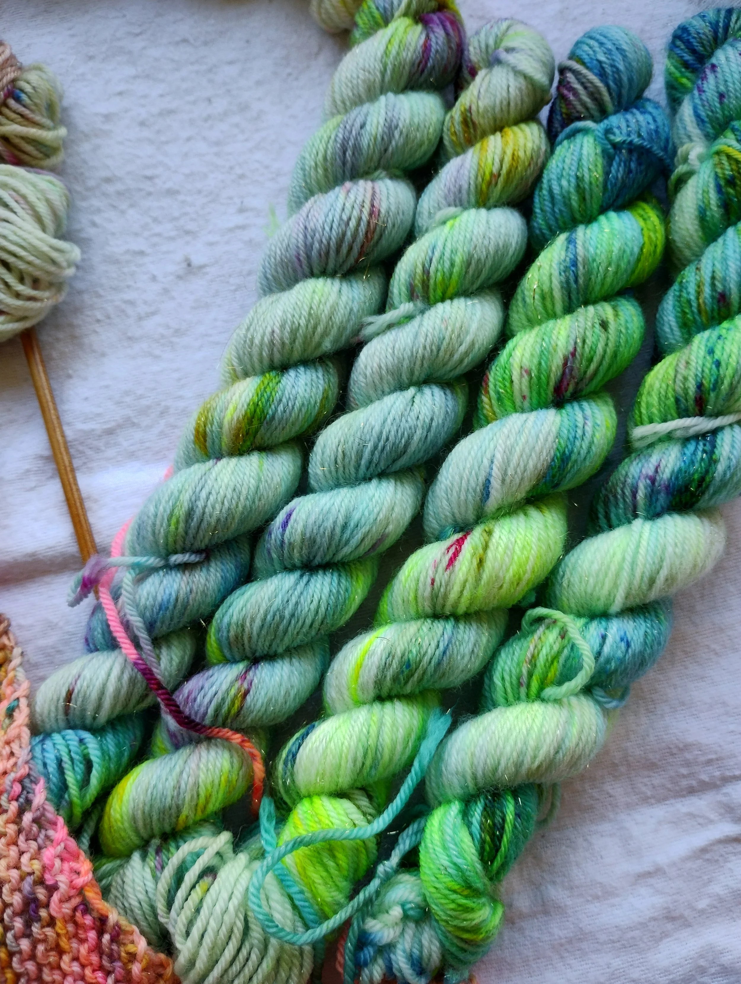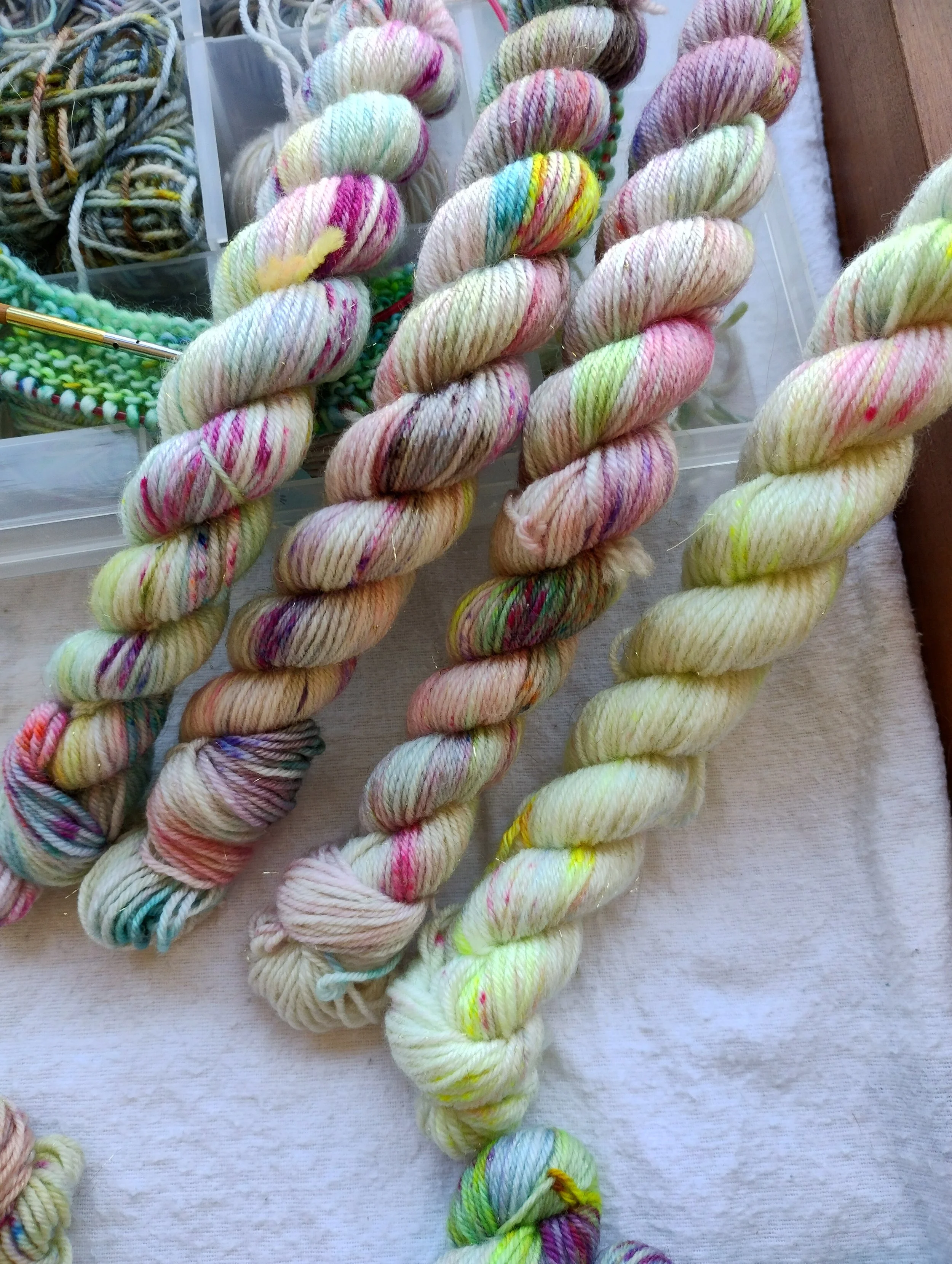 Sixteen Minis in a gradient, taking in all of the Too Much 4 ply colourways. Each one is slightly but subtly different. Didn’t pick up terribly well on camera - much better in person!