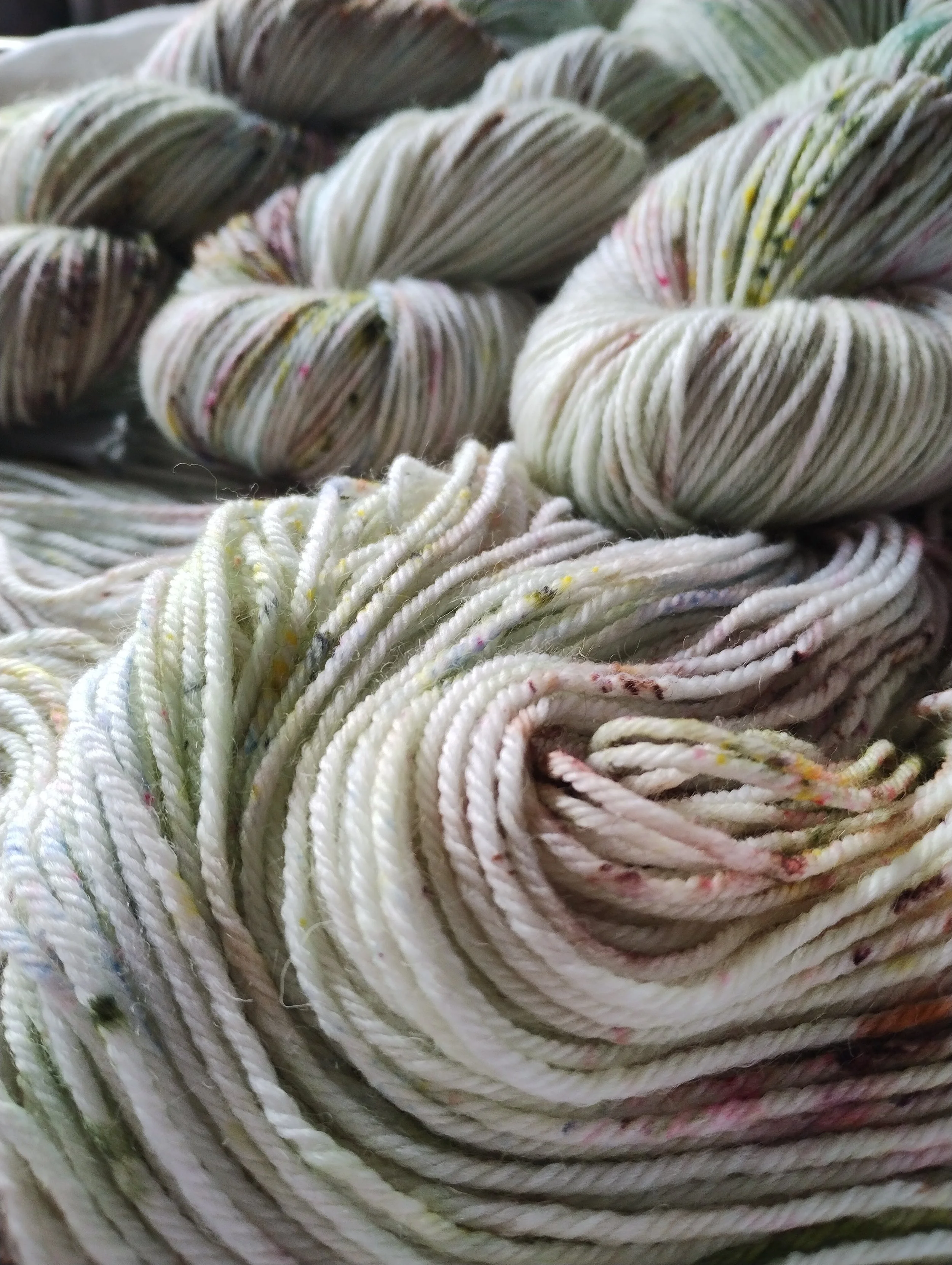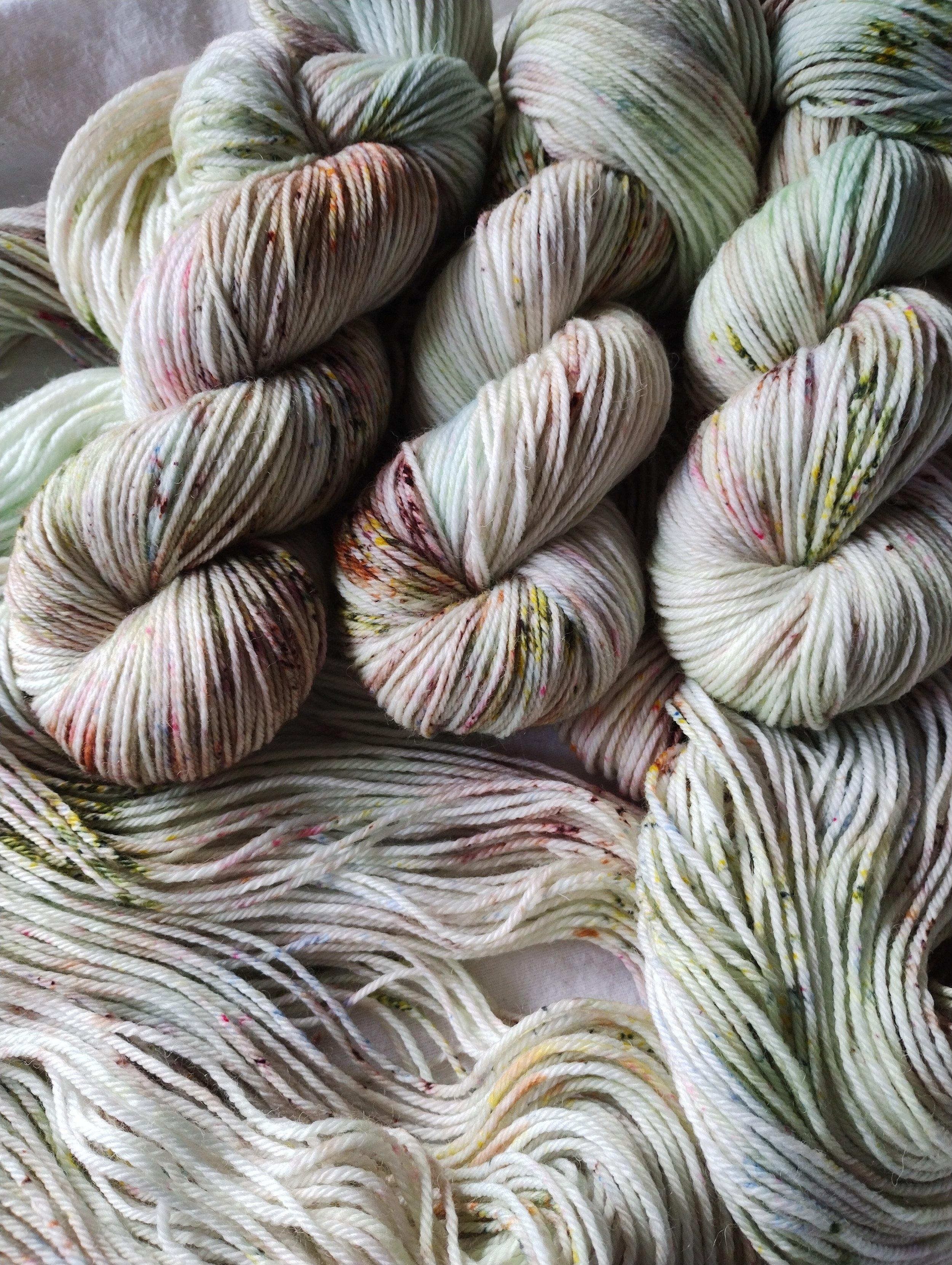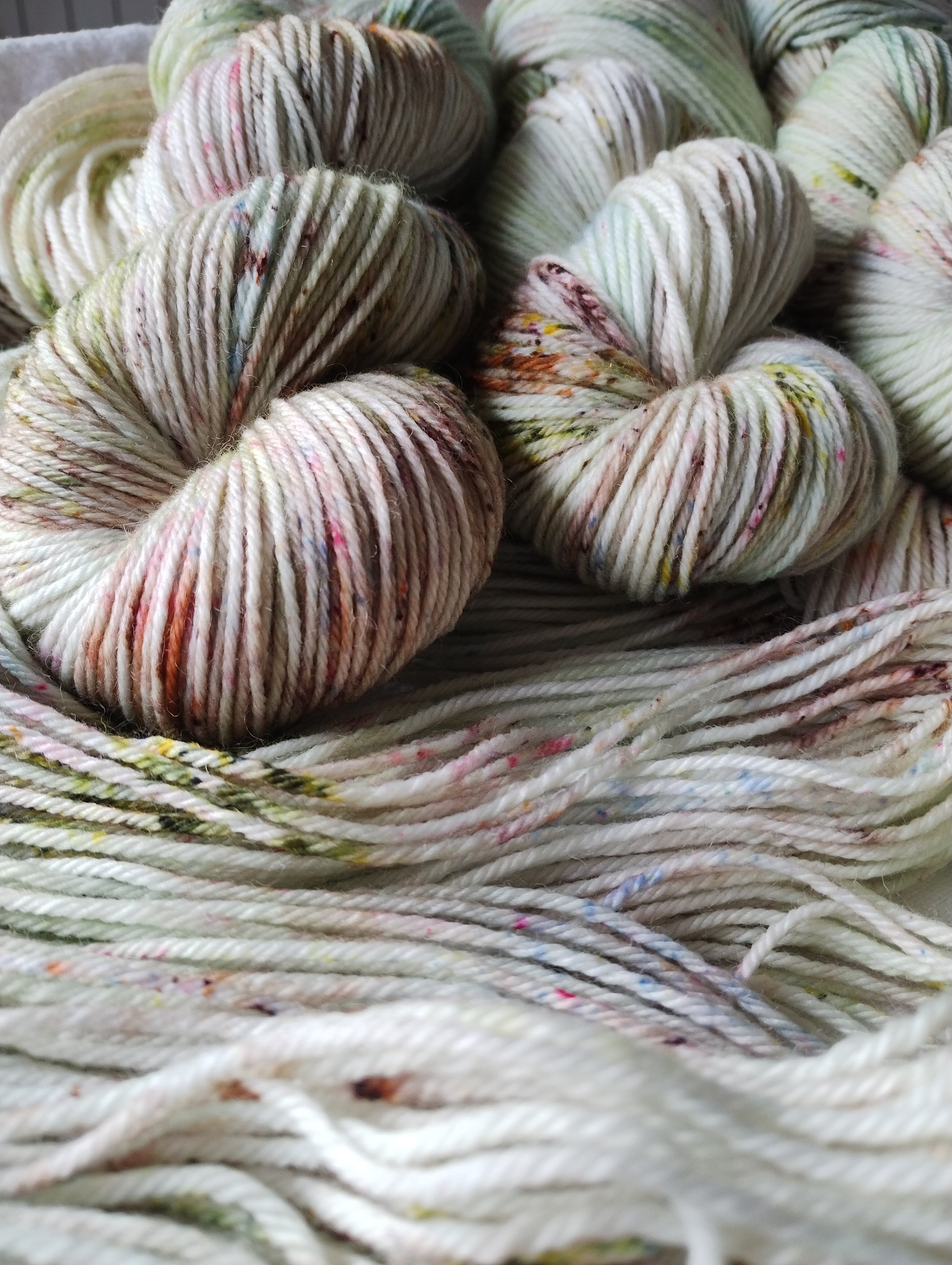 In the studio, we use minimal resources, recycle soak and dye water where we can and try to source sustainable and recyclable packaging for your yarn wherever practical to do so.