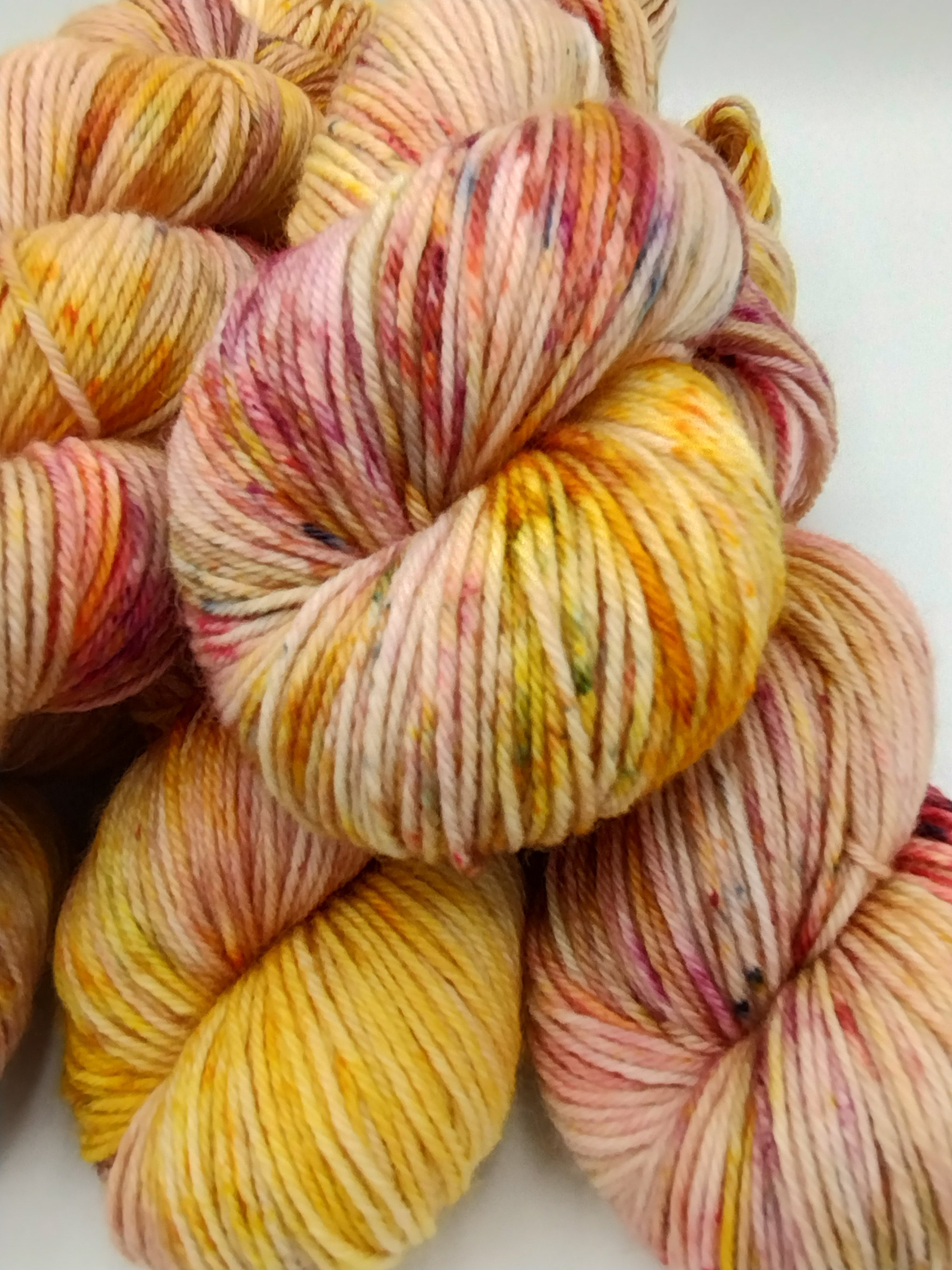A bouncy, durable but still soft all round DK yarn. This one has a bit more of a traditional lambswool handle but is still suitable for next to skin wear. A perennial favourite, it takes colour well and gives crisp stitch and speckle definition.