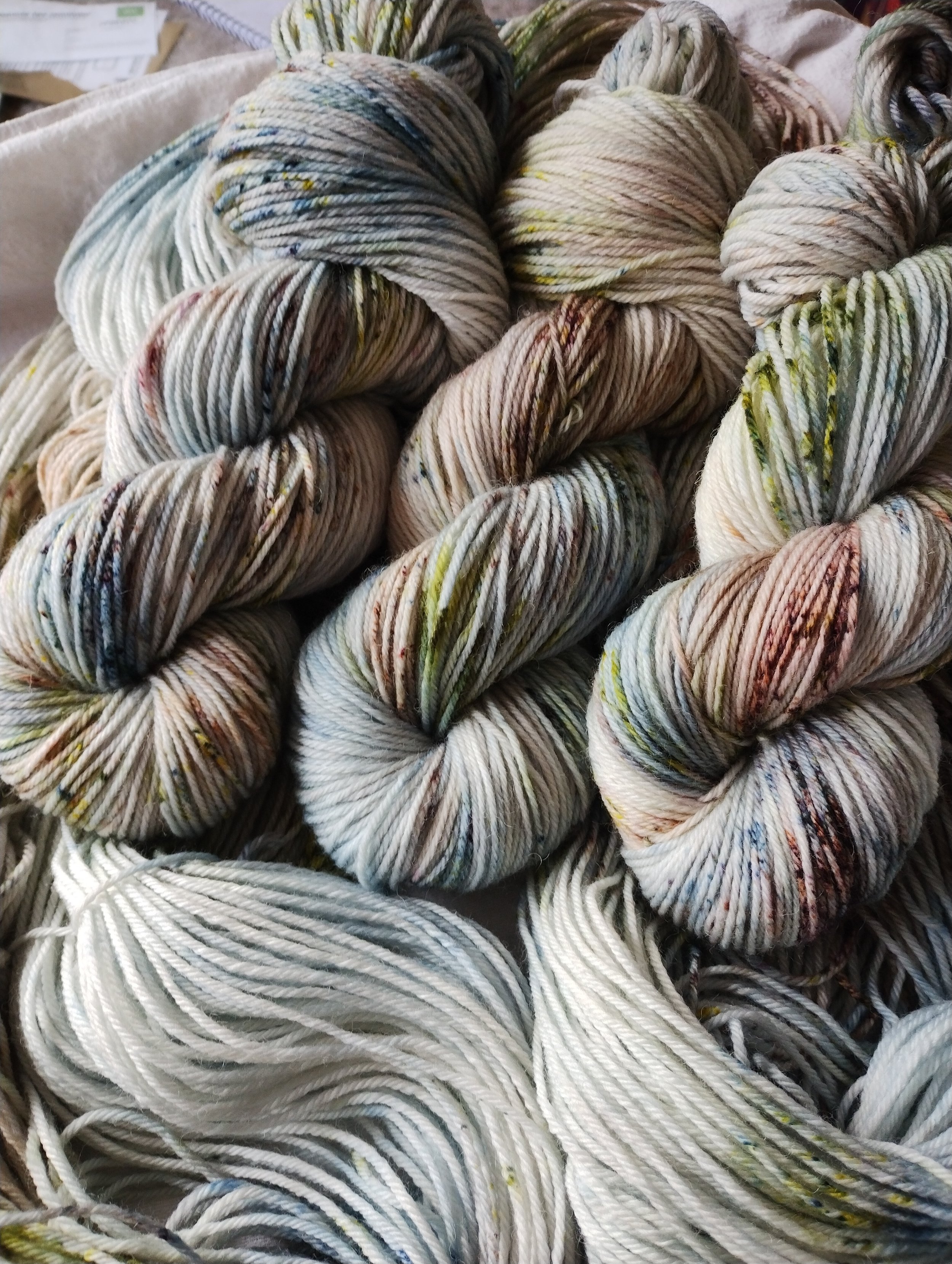 In the studio, we use minimal resources, recycle soak and dye water where we can and try to source sustainable and recyclable packaging for your yarn wherever practical to do so.