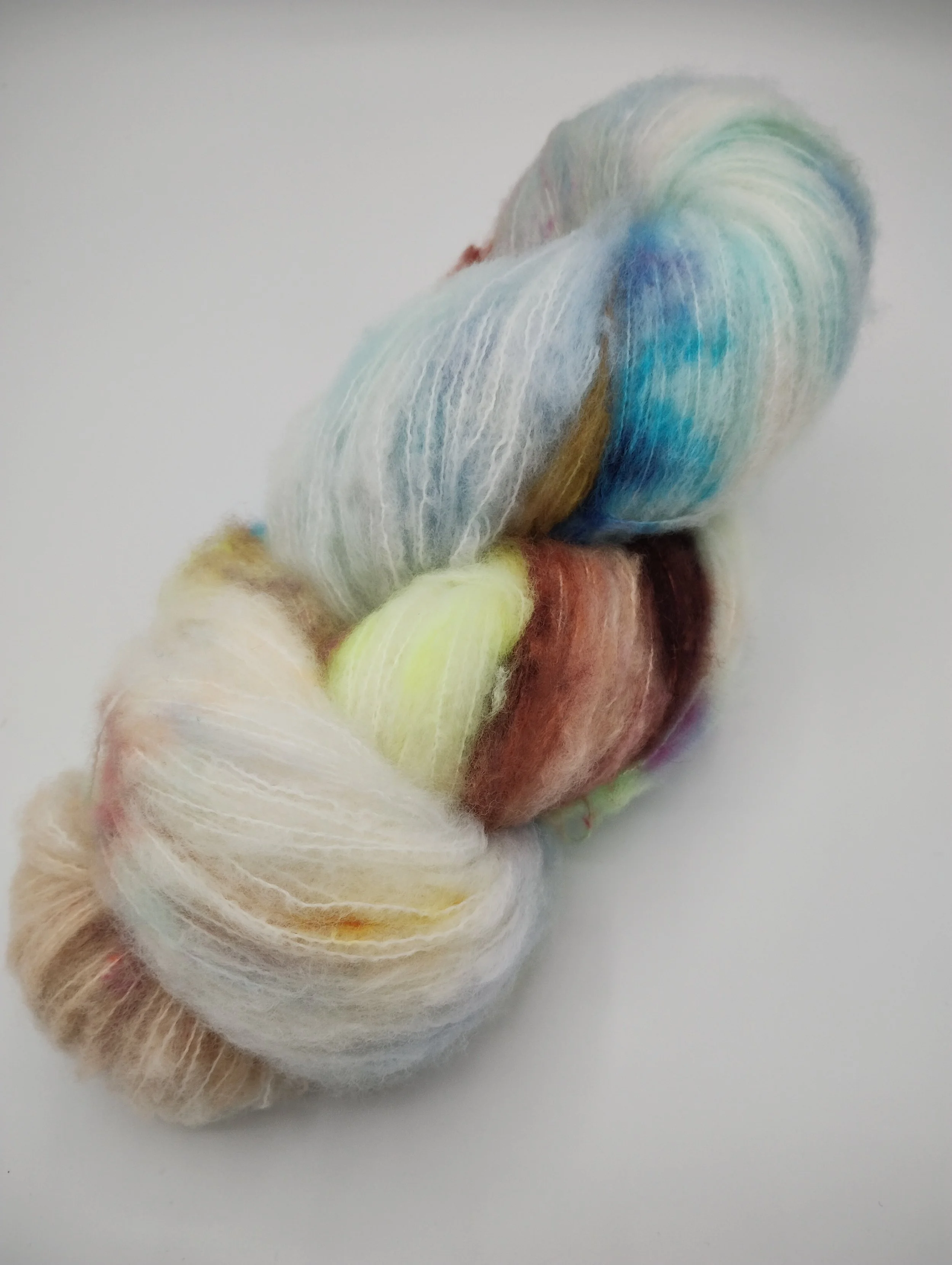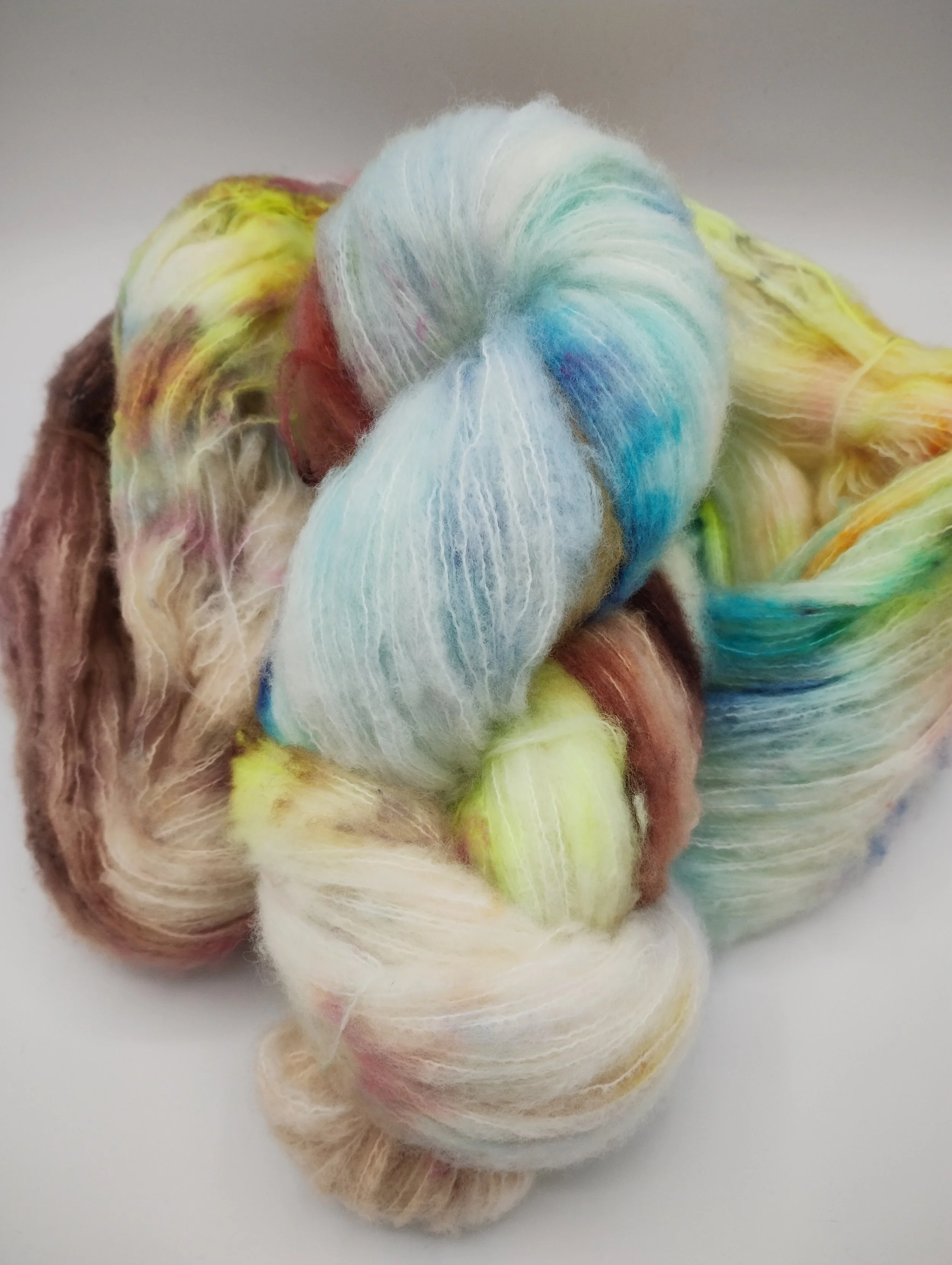 Fluff Lace is incredibly soft, warm and light. Knits to a DK gauge on 4mm needles and a little goes a long way. Non-shedding and non-itchy, it’s a great alternative to mohair, making it especially suitable for those with sensitive skin and eyes.