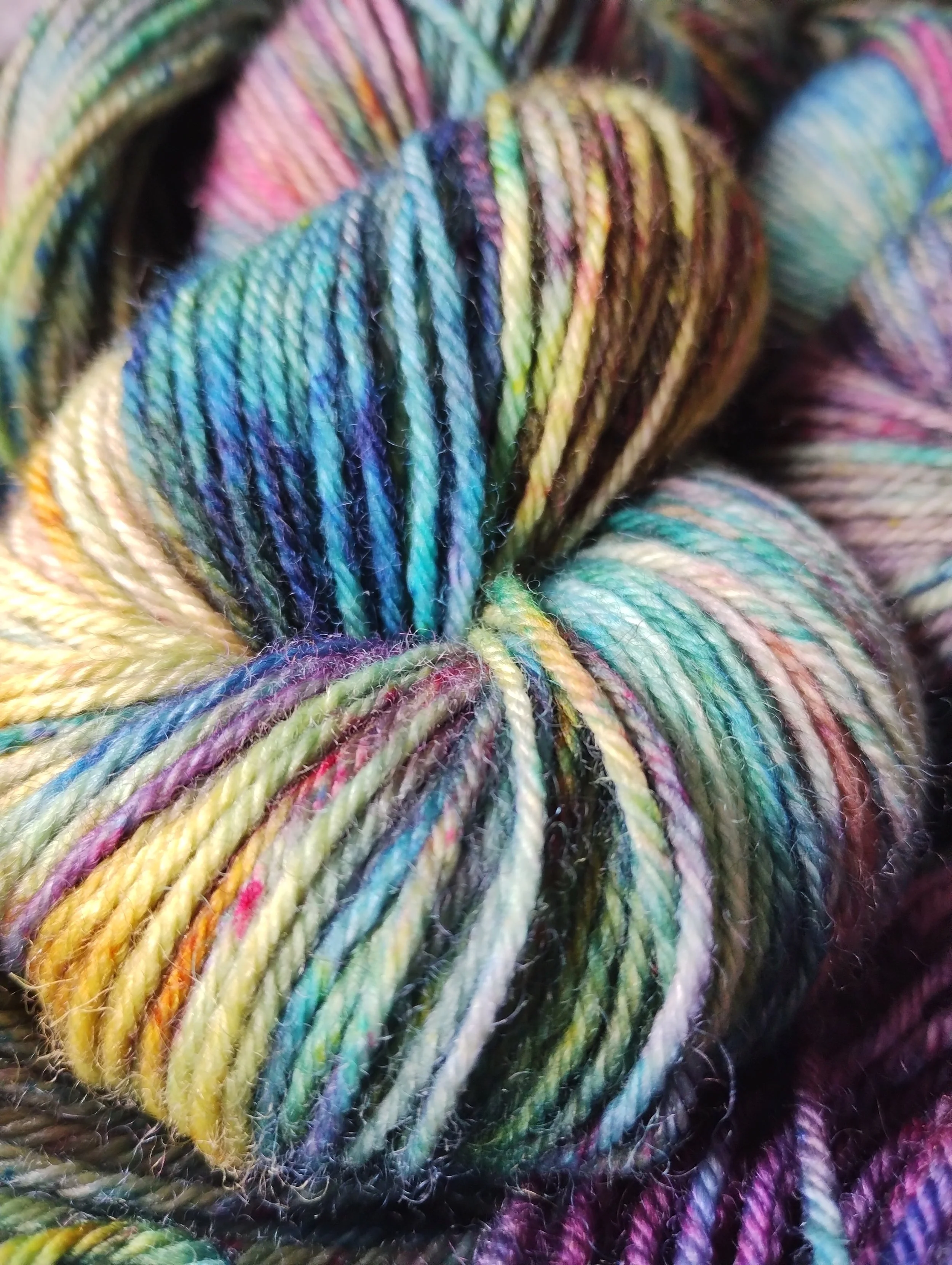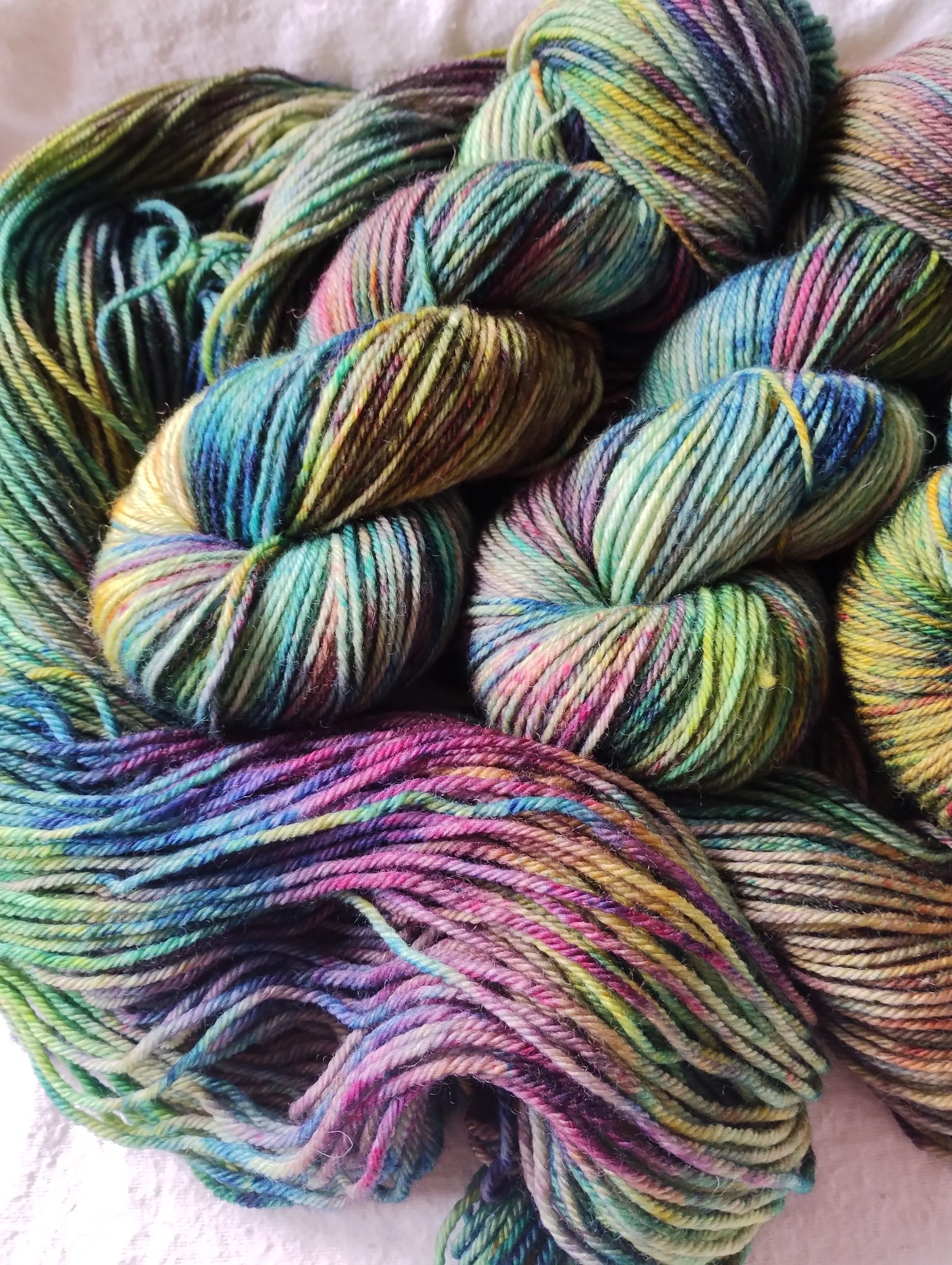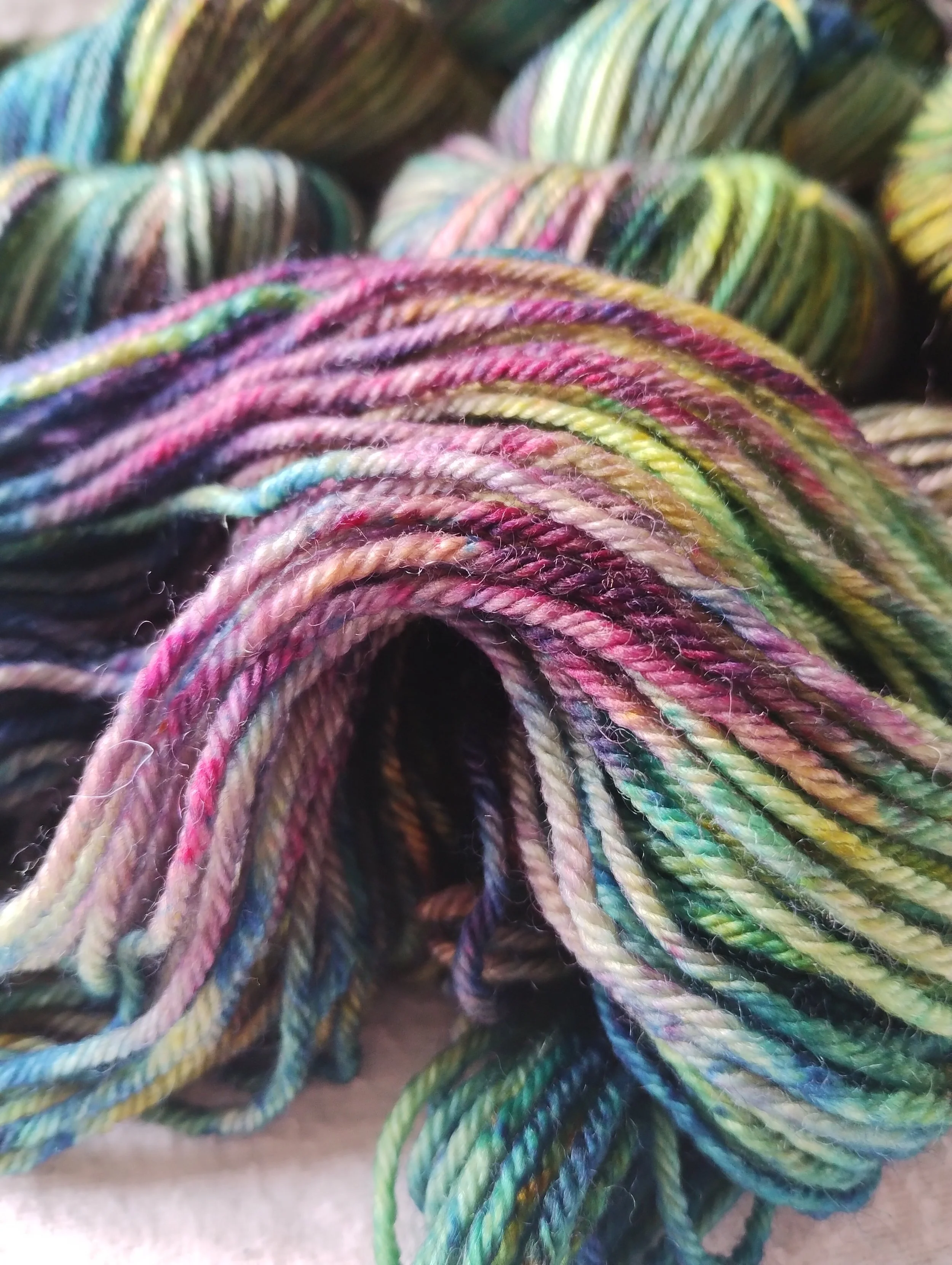 In the studio, we use minimal resources, recycle soak and dye water where we can and try to source sustainable and recyclable packaging for your yarn wherever practical to do so.