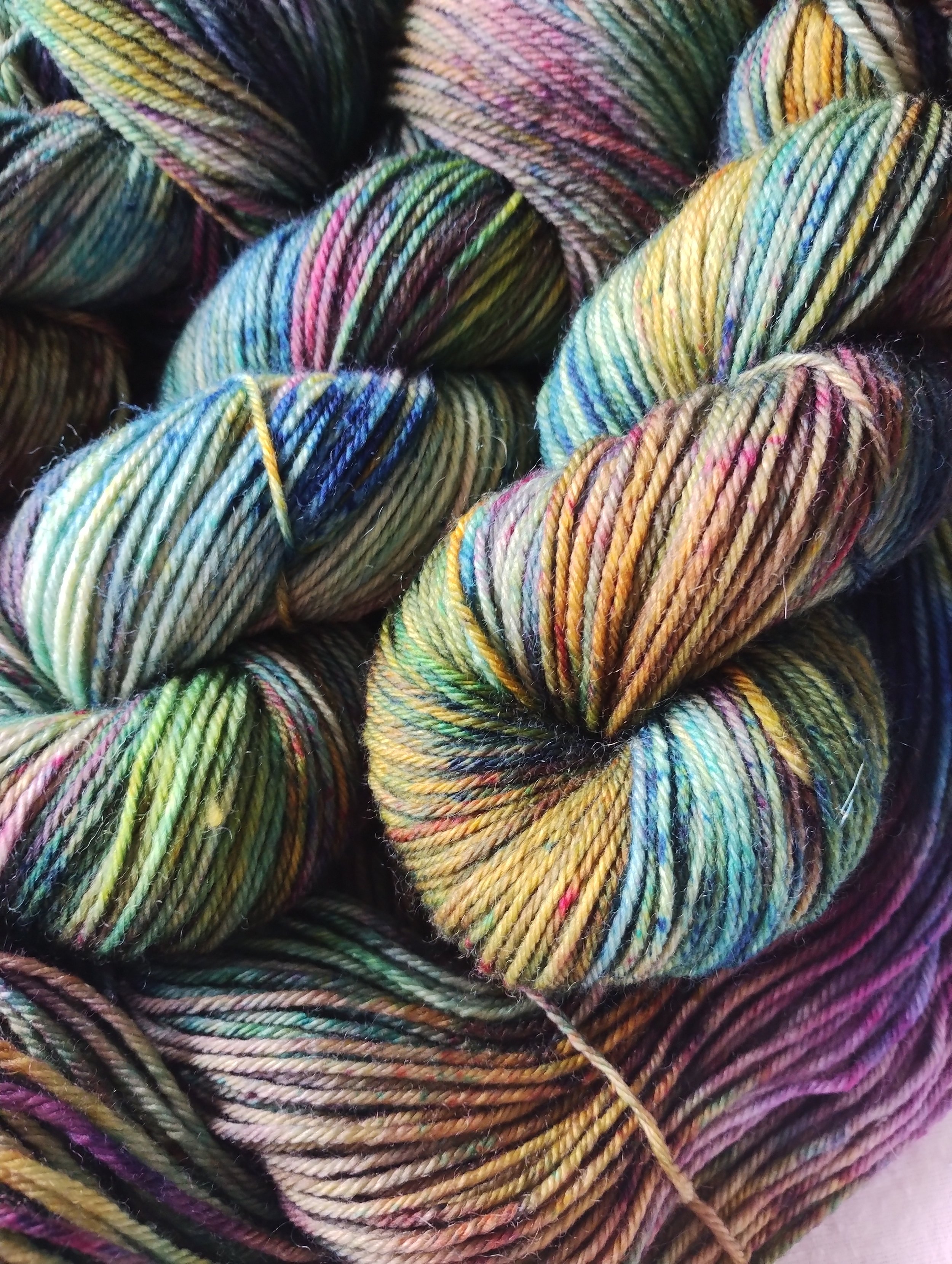 A bouncy, durable but still soft all round sock yarn. This one has a bit more of a traditional lambswool handle but is still suitable for next to skin wear. A perennial favourite, it takes colour well and gives crisp stitch and speckle definition.